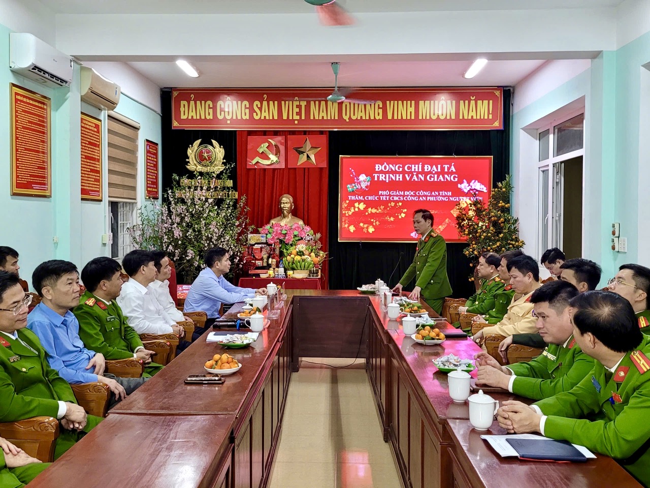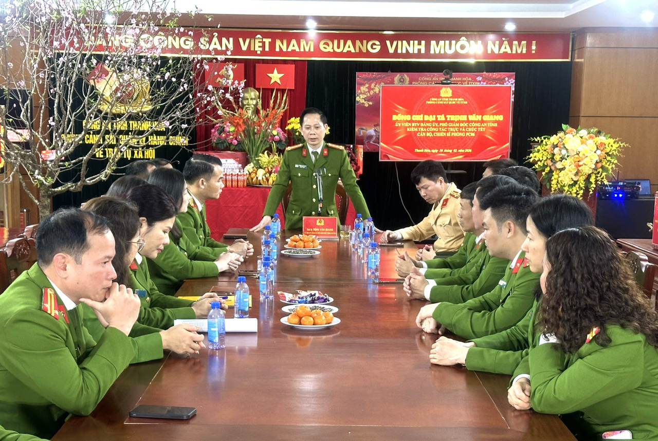 Đại tá Trịnh Văn Giang, Phó Giám đốc Công an tỉnh đã đến thăm, chúc Tết và kiểm tra công tác trực chiến của cán bộ, chiến sĩ Phòng Cảnh sát Quản lý hành chính về trật xã hội Công an tỉnh