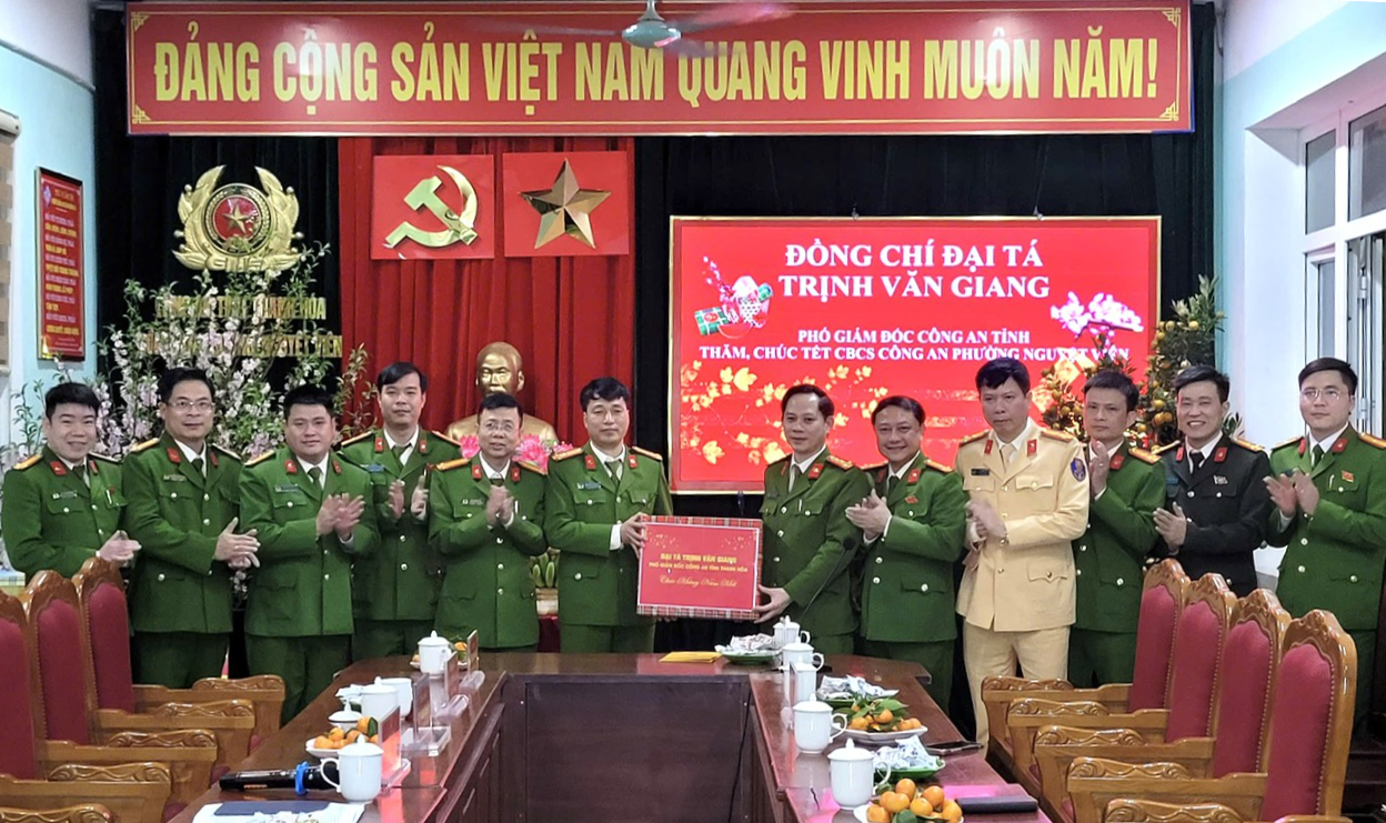 Với quyết tâm bảo đảm tuyệt đối an ninh, an toàn để Nhân dân vui Xuân, đón Tết bình yên, tối 16/02 (đêm Giao thừa), Đại tá Trịnh Văn Giang, Phó Giám đốc Công an tỉnh đã trực tiếp đến kiểm tra công tác ứng trực, triển khai phương án bảo đảm an ninh, trật tự (ANTT); thăm và động viên, chúc Tết cán bộ, chiến sĩ Công an phường Nguyệt Viên cùng các lực lượng tham gia làm nhiệm vụ trên địa bàn và cán bộ, chiến sĩ Phòng Cảnh sát Quản lý hành chính về trật tự xã hội Công an tỉnh...