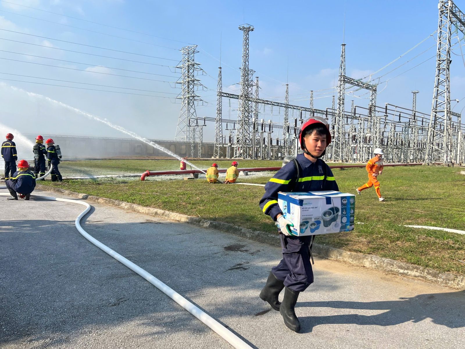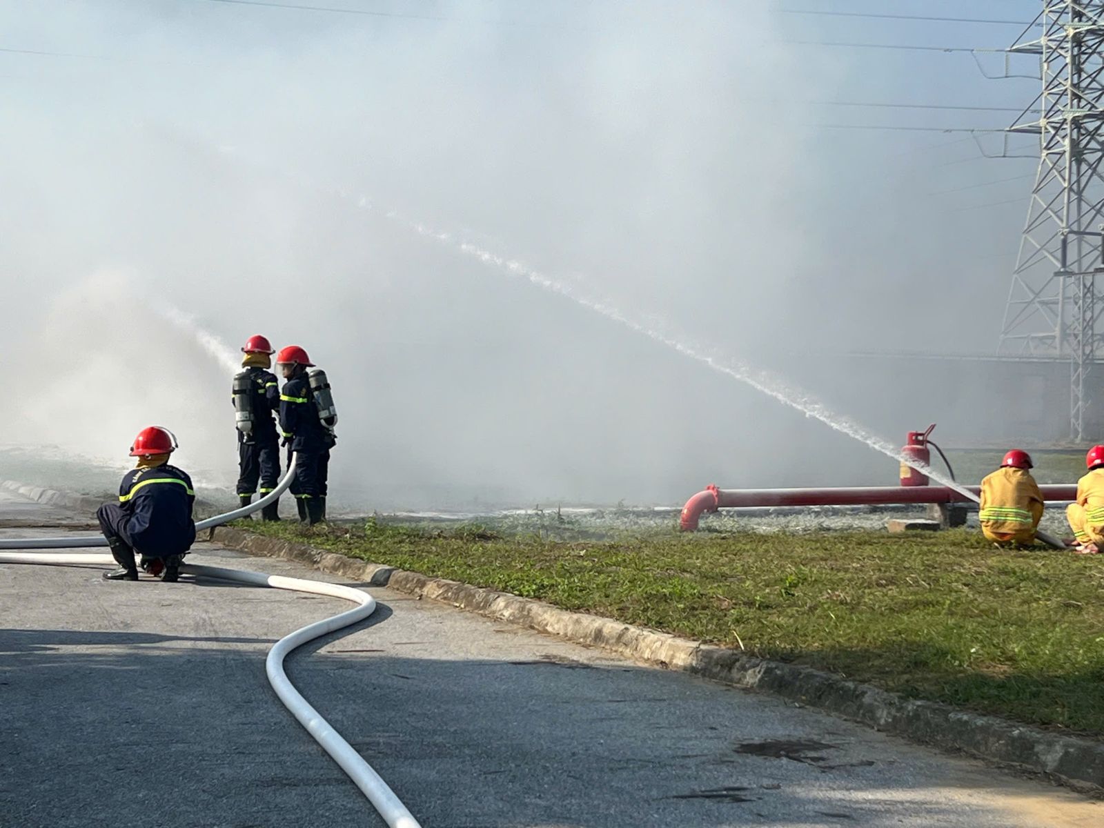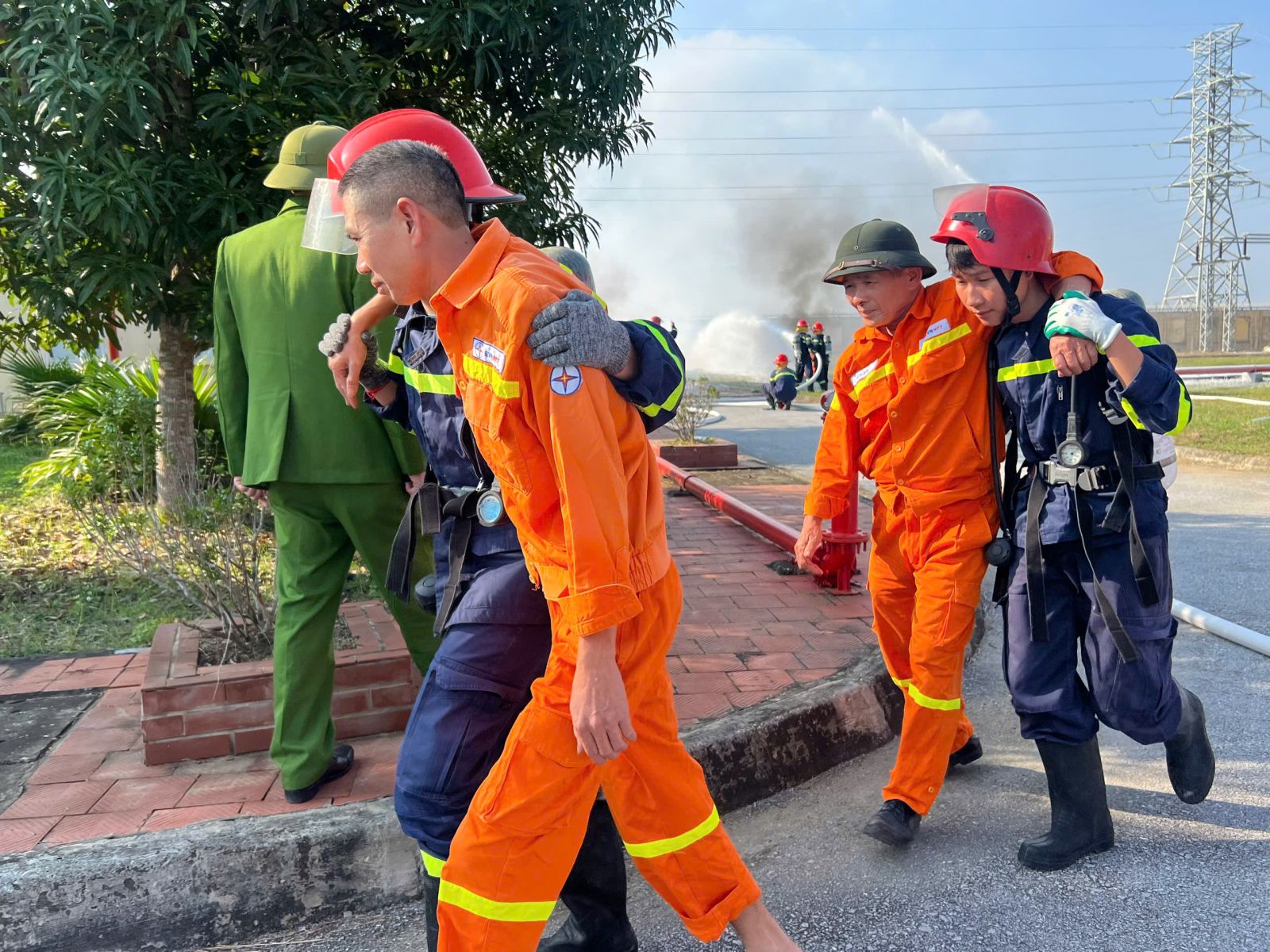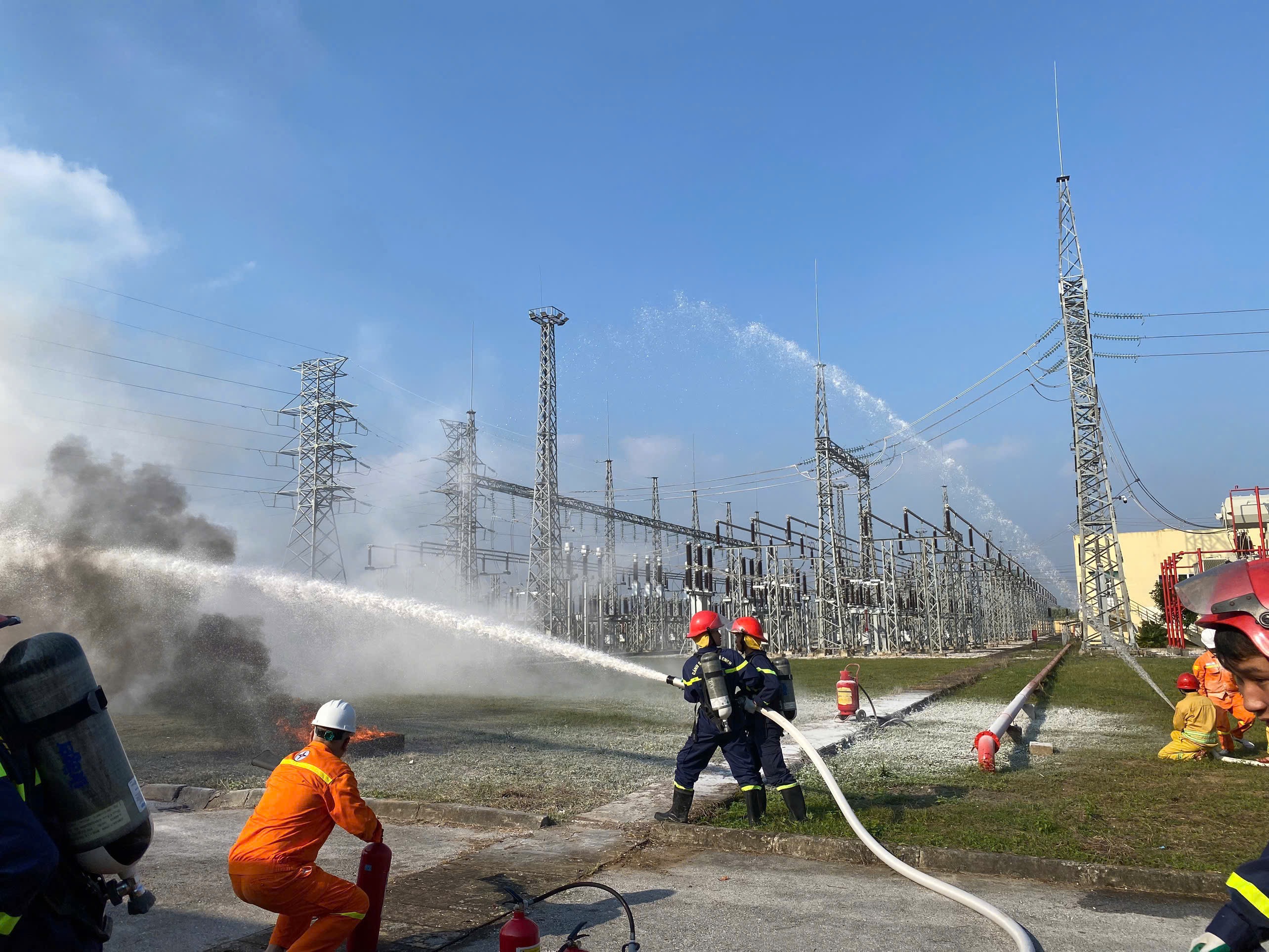 Diễn tập phương án chữa cháy, cứu nạn cứu hộ tại Trạm biến áp 220kV Nông Cống