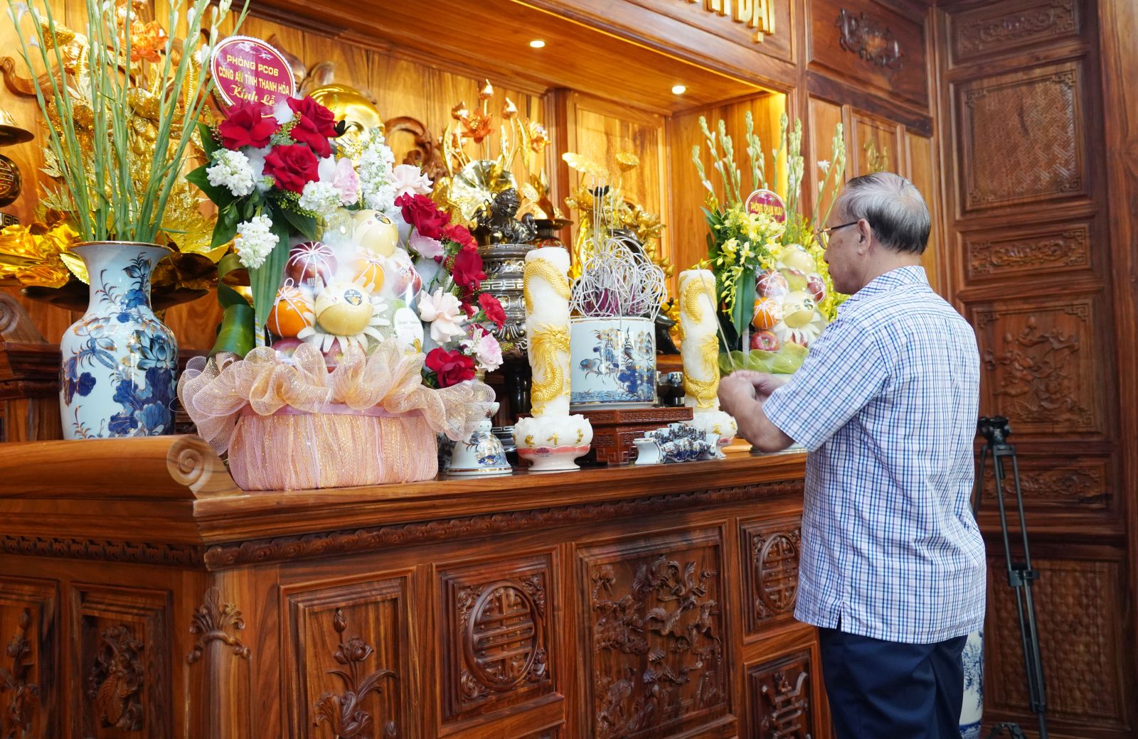 Các đại biểu dâng hương tưởng niệm Chủ tịch Hồ Chí Minh tại Nhà truyền thống Công an tỉnh