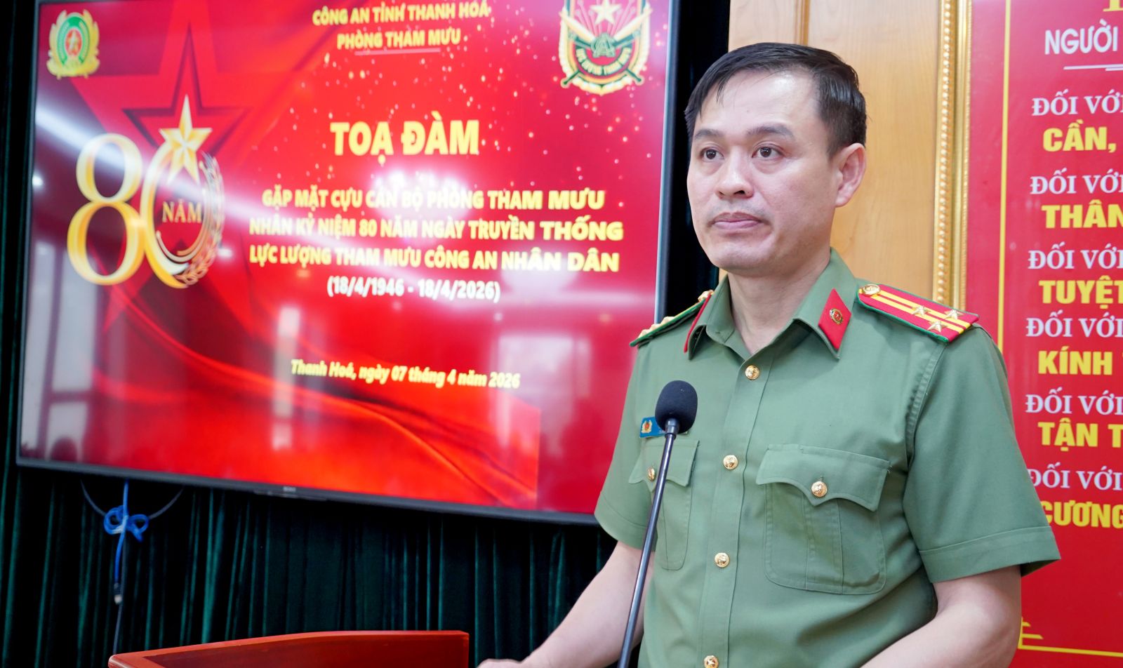 Sáng 07/4, Phòng Tham mưu Công an tỉnh tổ chức buổi tọa đàm, gặp mặt Câu lạc bộ Hội Cựu cán bộ Phòng Tham mưu nhân dịp kỷ niệm 80 năm Ngày truyền thống lực lượng Tham mưu Công an nhân dân (18/4/1946 - 18/4/2026). Đây là dịp đặc biệt để ôn lại truyền thống vẻ vang, tri ân những đóng góp của các thế hệ cán bộ Phòng Tham mưu, đồng thời khẳng định vai trò, vị trí quan trọng của công tác tham mưu trong sự nghiệp bảo vệ an ninh, trật tự trong tình hình mới…