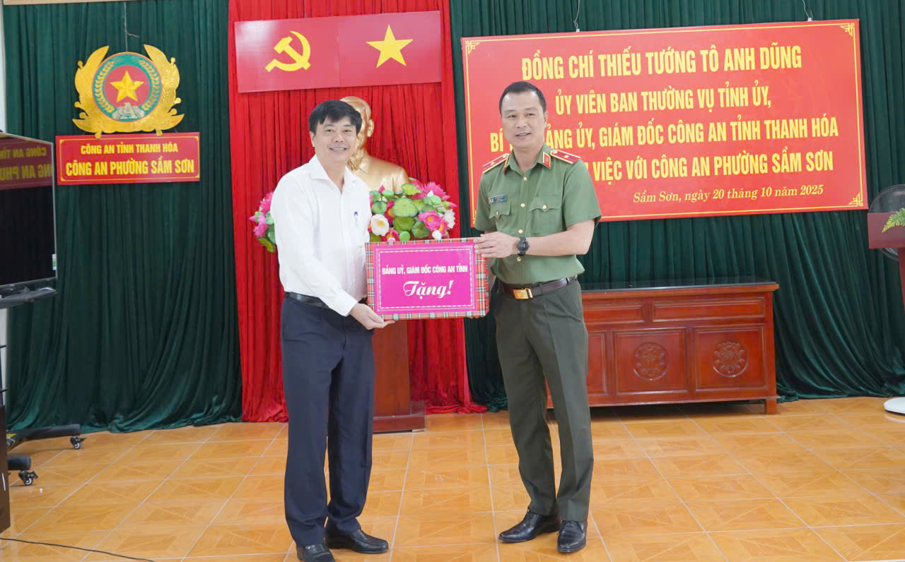 Sáng 20/10, đồng chí Thiếu tướng Tô Anh Dũng, Ủy viên Ban Thường vụ Tỉnh ủy, Bí thư Đảng ủy, Giám đốc Công an tỉnh đến thăm, làm việc tại Công an phường Sầm Sơn, tỉnh Thanh Hóa. Dự buổi làm việc có đồng chí Bùi Quốc Đạt, Phó Bí thư Thường trực Đảng ủy phường Sầm Sơn; Lê Huy Hưng, Phó Chủ tịch UBND phường Sầm Sơn; các đồng chí Trưởng Phòng nghiệp vụ Công an tỉnh.