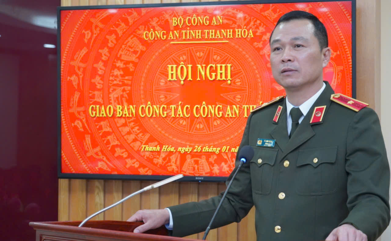 Chiều 26/01/2026, Công an tỉnh Thanh Hóa tổ chức Hội nghị giao ban đánh giá tình hình công tác tháng 01; triển khai nhiệm vụ công tác tháng 02/2026. Đồng chí Thiếu tướng Tô Anh Dũng, Bí thư Đảng ủy, Giám đốc Công an tỉnh chủ trì Hội nghị.