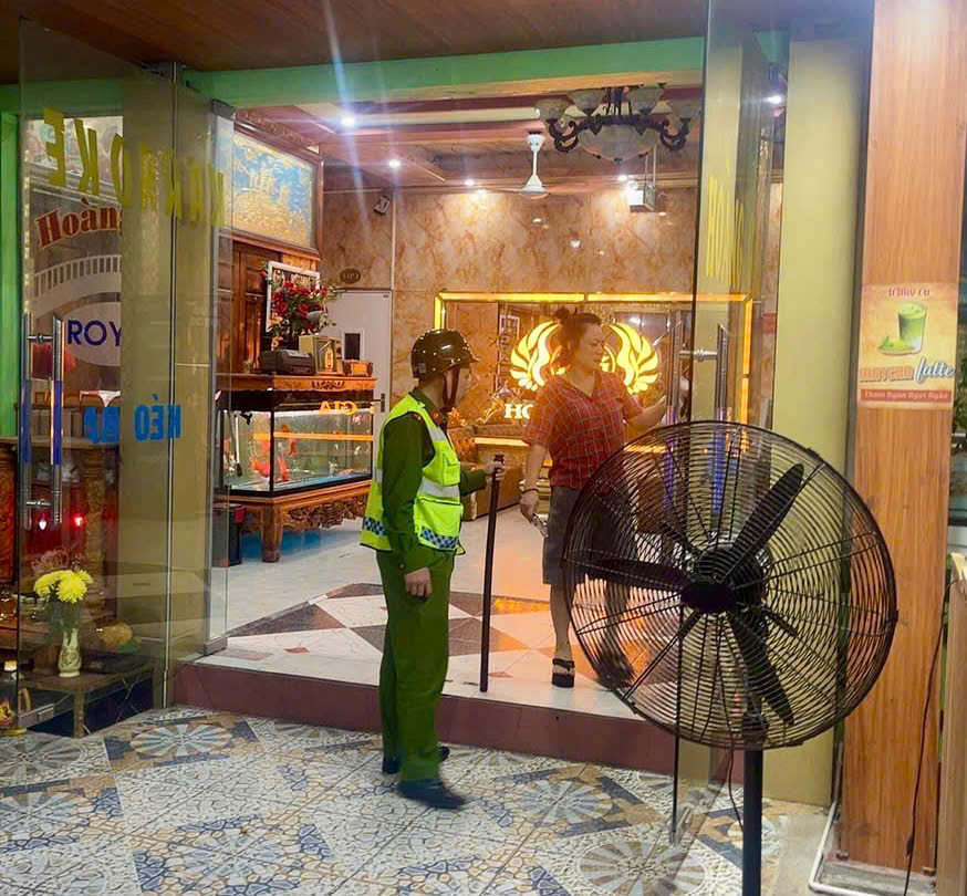 Lực lượng Công an tăng cường tuần tra, tuyên truyền, nhắc nhở các hộ kinh doanh buôn bán tại khu du lịch biển Hải Hòa