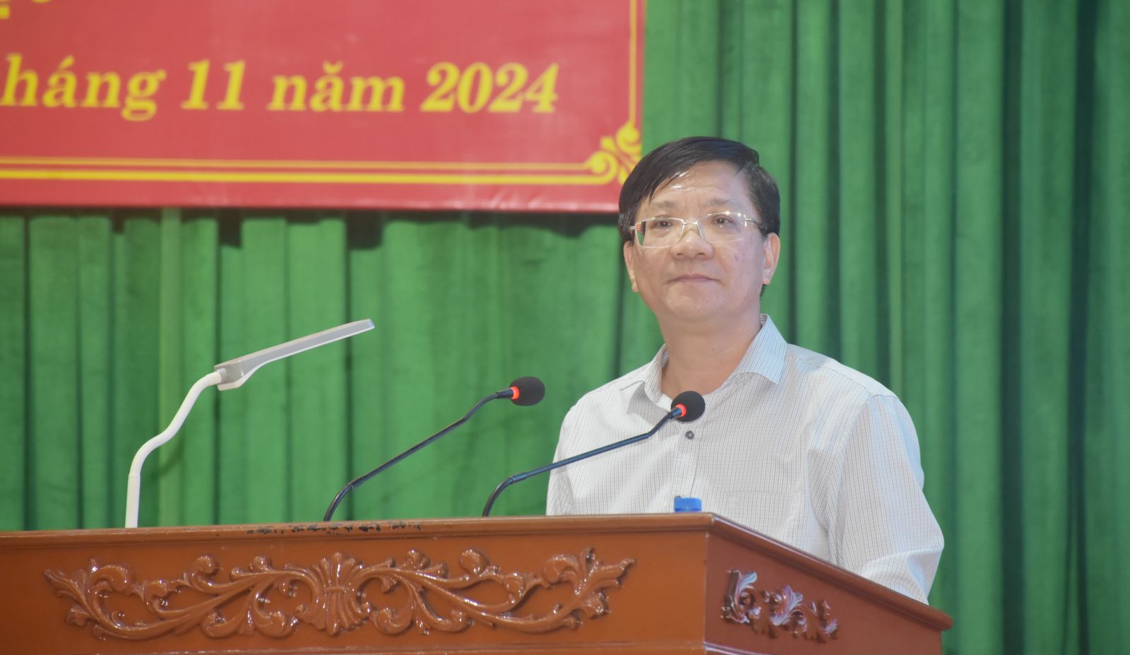 Đồng chí Hoàng Anh Tuấn, Bí thư Huyện ủy Hậu Lộc phát biểu tại Hội nghị