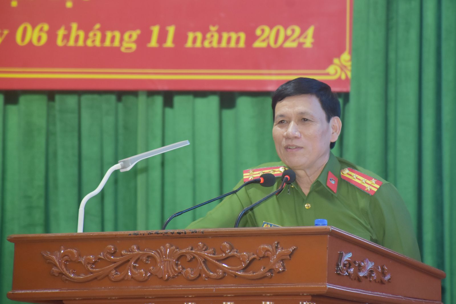 Đại tá Dương Văn Tiến, Phó Giám đốc Công an tỉnh phát biểu chỉ đạo tại Hội nghị.