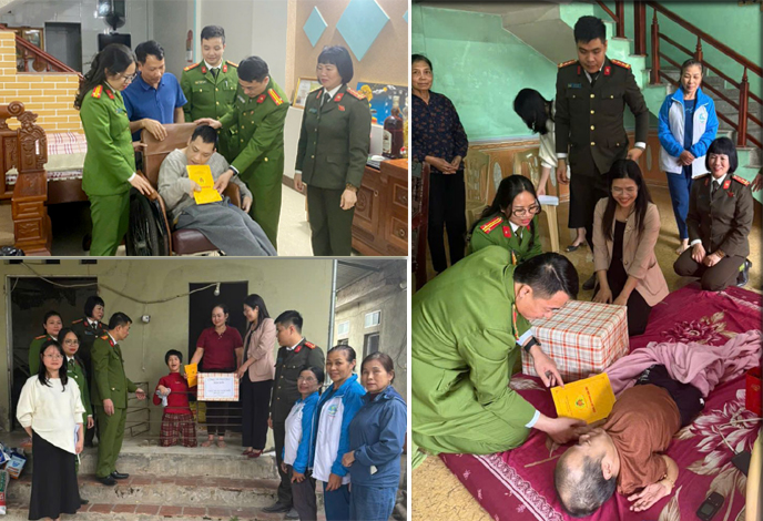 Trên cơ sở nắm chắc tình hình địa bàn, Chi đoàn Thanh niên và Chi hội Phụ nữ Công an phường đã chủ động rà soát, tham mưu chỉ huy đơn vị xây dựng kế hoạch tổ chức thăm hỏi, động viên các gia đình bảo đảm đúng đối tượng, kịp thời và thiết thực. Theo đó, Đoàn công tác đã đến thăm anh Nguyễn Văn Đại (sinh năm 1986), người khuyết tật bẩm sinh; cháu Vũ Thị Trang (sinh năm 1995), người khuyết tật bẩm sinh, cùng trú tại Tổ dân phố Đại Lợi và cháu Mai Duy Linh (sinh năm 1992), người khuyết tật bẩm sinh, trú tại Tổ dân phố số 3, phường Bỉm Sơn. Đây đều là những trường hợp có hoàn cảnh đặc biệt khó khăn, trong đó có gia đình là thân nhân nguyên cán bộ Công an.