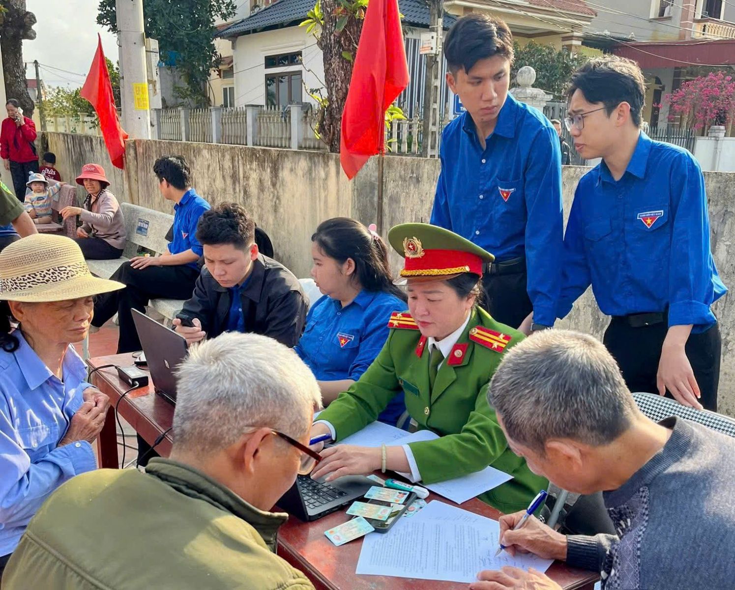 Công an phường Đông Sơn phối hợp cùng Đoàn trường Đại học Hồng Đức hỗ trợ người dân liên kết tài khoản ASXH
