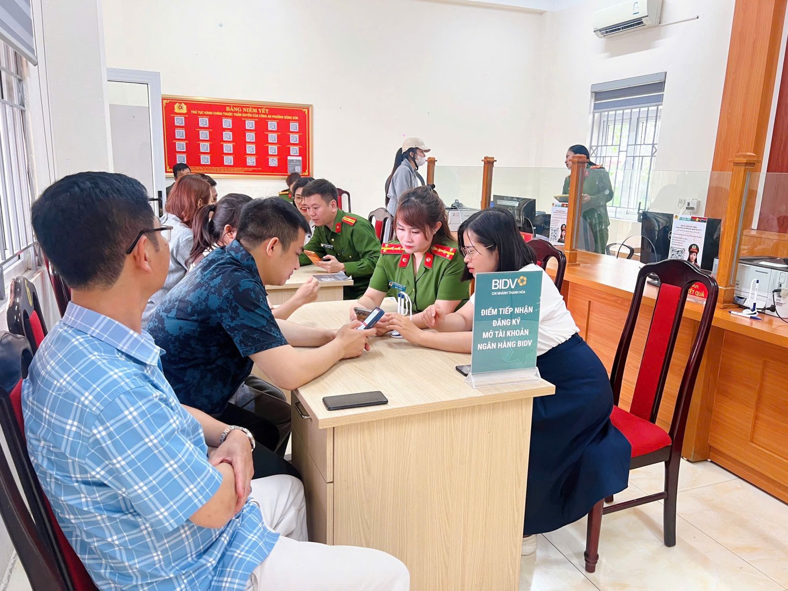 Công an phường Đông Sơn phối hợp cùng Ngân hàng BIDV - Chi nhánh Thanh Hóa hỗ trợ người dân liên kết tài khoản ASXH