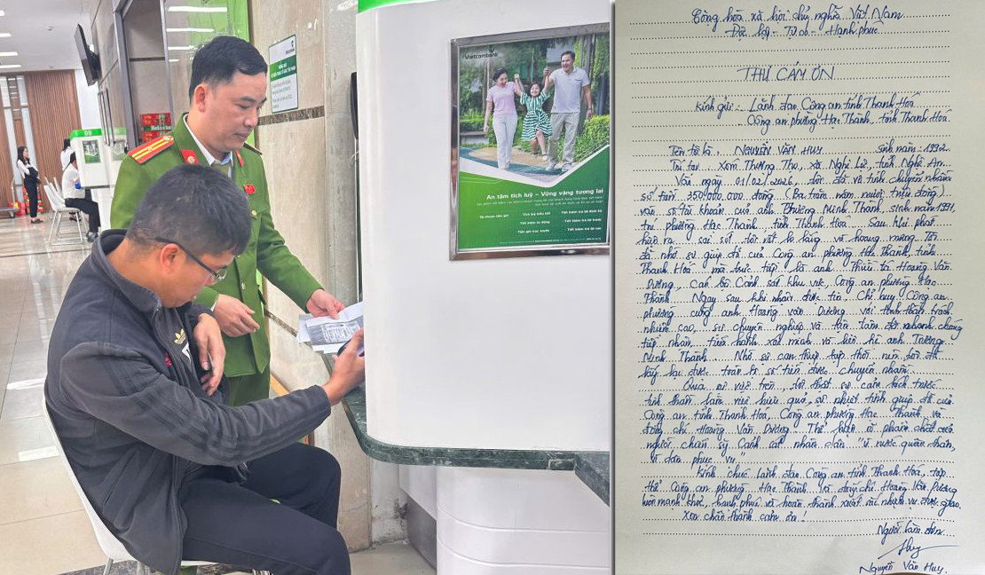 Sau khi nhận lại đủ số tiền chuyển khoản nhầm, anh Nguyễn Văn Huy đã cảm kích viết thư cảm ơn Công an phường