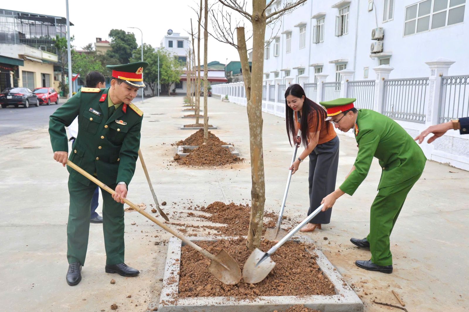 Cán bộ, chiến sĩ Công an xã tham gia cùng các lực lượng hưởng ứng phong trào “Tết trồng cây đời đời nhớ ơn Bác Hồ”.