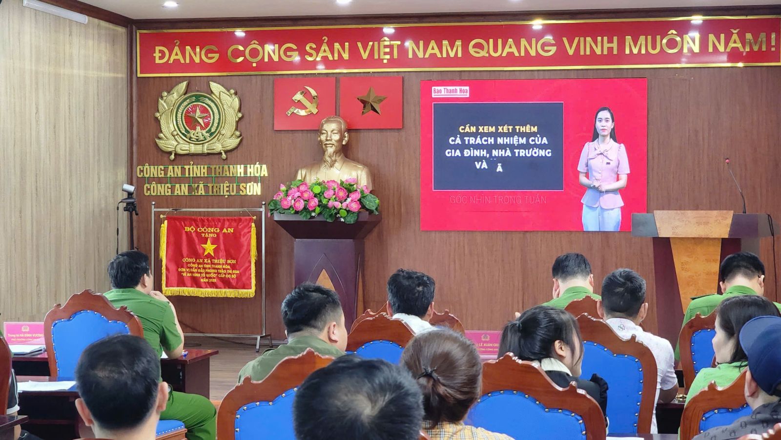 Công an xã Triệu Sơn vừa tổ chức hội nghị tuyên truyền, phổ biến pháp luật cho 50 cơ sở kinh doanh dịch vụ ăn uống, karaoke, internet rên địa bàn. Đây là hoạt động thiết thực nhằm nâng cao nhận thức, ý thức chấp hành pháp luật trong các tầng lớp nhân dân, đặc biệt là các cơ sở kinh doanh có điều kiện và nhóm thanh thiếu niên có nguy cơ vi phạm pháp luật.