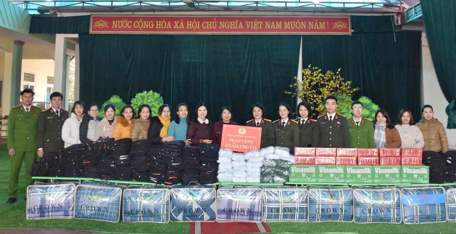 Không chỉ tận tâm, tận tụy trong công việc, những nữ chiến sĩ Công an Thanh Hóa còn mang trong mình trái tim nhân hậu và tinh thần trách nhiệm, sự đồng cảm, sẻ chia khó khăn với trẻ em tại các xã vùng núi, vùng đồng bào dân tộc thiểu số trên địa bàn tỉnh. Giữa gió rét khắc nghiệt và địa hình hiểm trở của vùng cao, các chị không quản ngại vượt qua chặng đường xa để mang hơi ấm đến với trẻ em nghèo.
