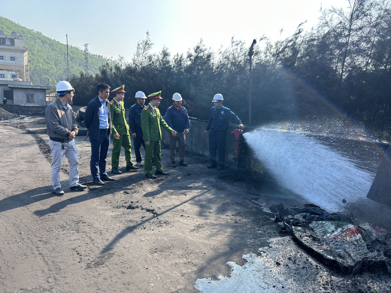 Đoàn công tác tiến hành kiểm tra thực tế khả năng xử lý các tình huống cháy, nổ đột xuất của lực lượng PCCC cơ sở