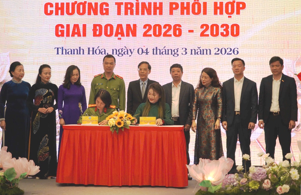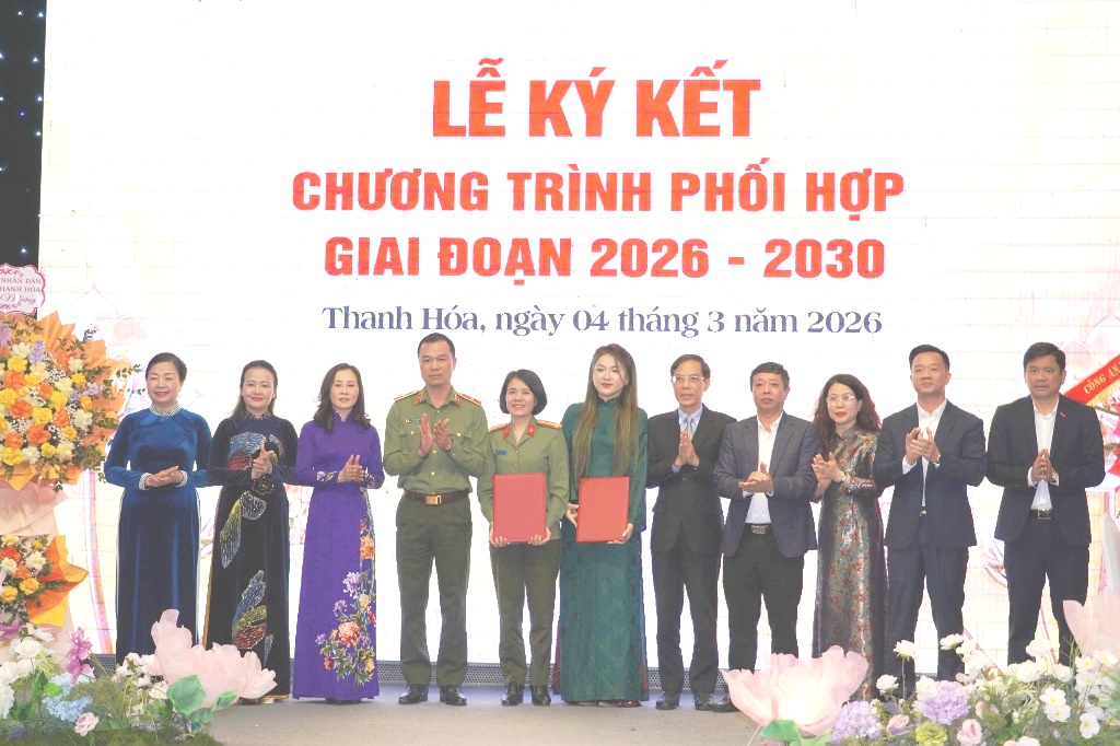 Chiều 04/3/2026, Hội Phụ nữ Công an tỉnh Thanh Hóa và Hiệp hội Doanh nhân nữ Thanh Hóa tổ chức Lễ ký kết Chương trình phối hợp giai đoạn 2026 - 2030. Dự và chỉ đạo buổi lễ, về phía lãnh đạo tỉnh có đồng chí Đầu Thanh Tùng, Tỉnh ủy viên, Phó Chủ tịch UBND tỉnh, Trưởng ban Vì sự tiến bộ của phụ nữ tỉnh. Về phía Công an tỉnh có đồng chí Thiếu tướng Tô Anh Dũng, Ủy viên Ban Thường vụ Tỉnh uỷ, Giám đốc Công an tỉnh…