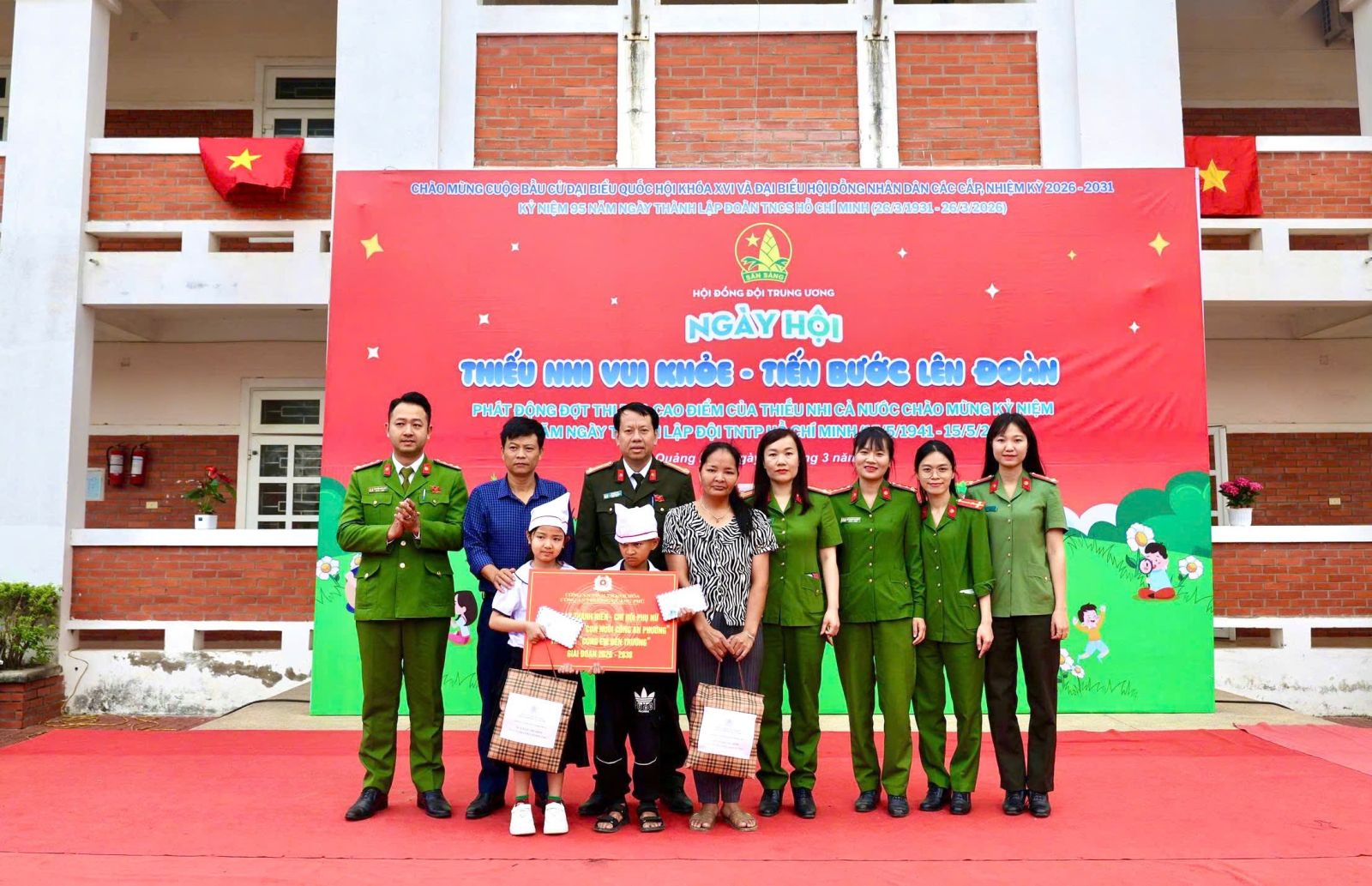 Chi đoàn Công an phường Quảng Phú trao hỗ trợ cho học sinh có hoàn cảnh khó khăn trong chương trình “Thiếu nhi vui khỏe – Tiến bước lên Đoàn”