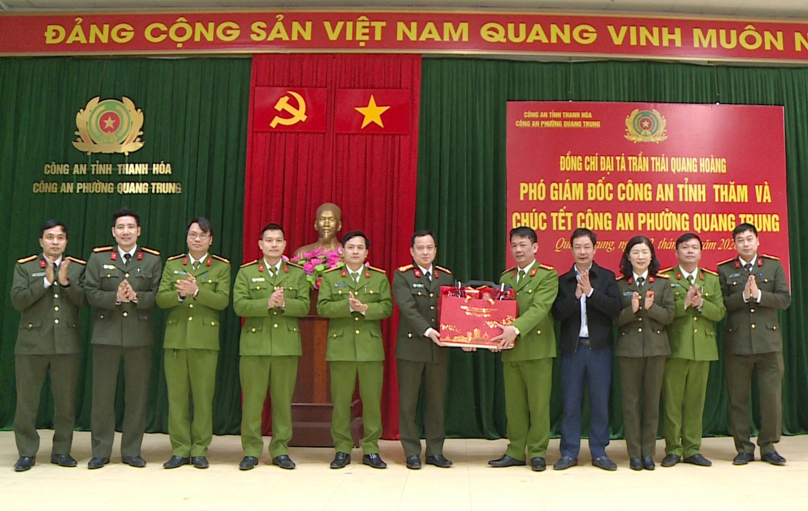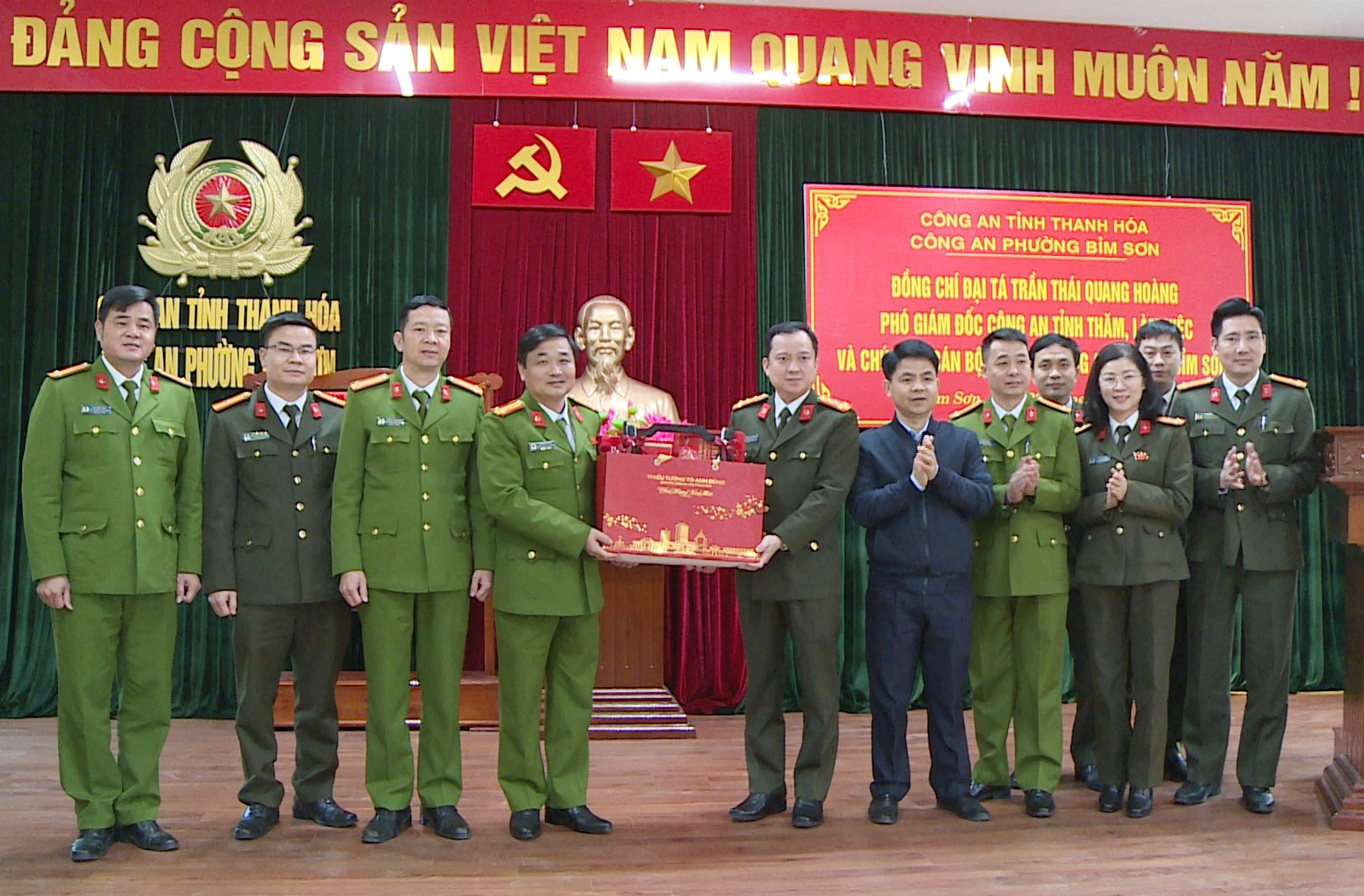 Ngày 23/01, Đoàn công tác của Công an tỉnh Thanh Hoá do Đại tá Trần Thái Quang Hoàng, Phó Bí thư Đảng uỷ, Phó Giám đốc Công an tỉnh làm Trưởng đoàn đã đến thăm, tặng quà chúc Tết cán bộ, chiến sĩ Công an các phường Bỉm Sơn, Quang Trung và xã Nga Thắng...