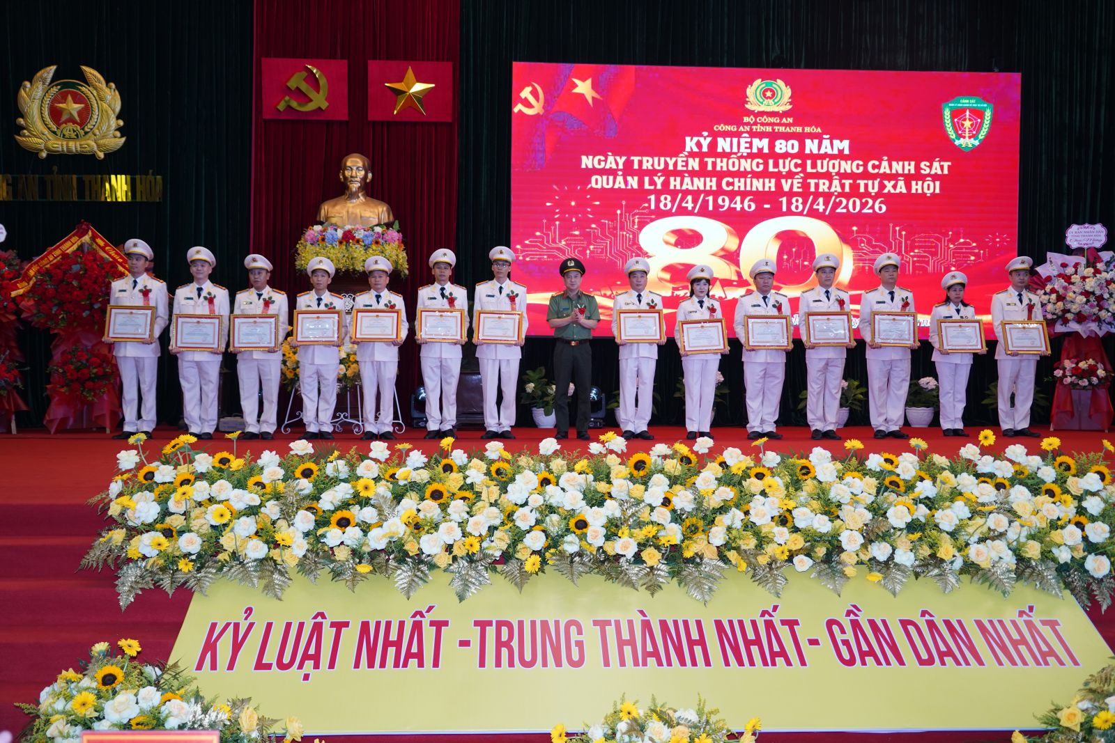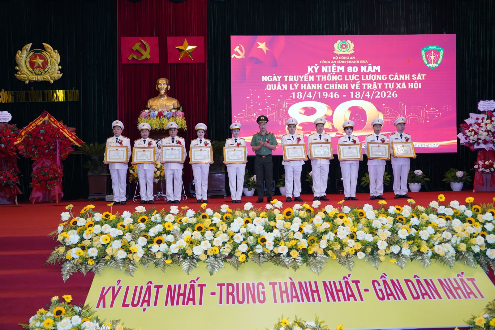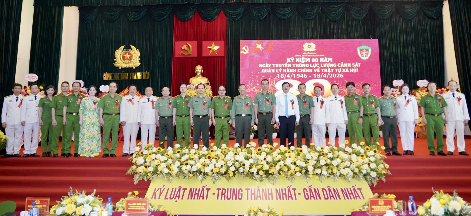 Chiều 14/4/2026, Công an tỉnh Thanh Hóa tổ chức Lễ kỷ niệm 80 năm Ngày truyền thống lực lượng Cảnh sát quản lý hành chính về trật tự xã hội (18/4/1946 - 18/4/2026). Thiếu tướng Tô Anh Dũng, Ủy viên Ban Thường vụ Tỉnh ủy, Giám đốc Công an tỉnh dự và phát biểu chỉ đạo tại Lễ kỷ niệm