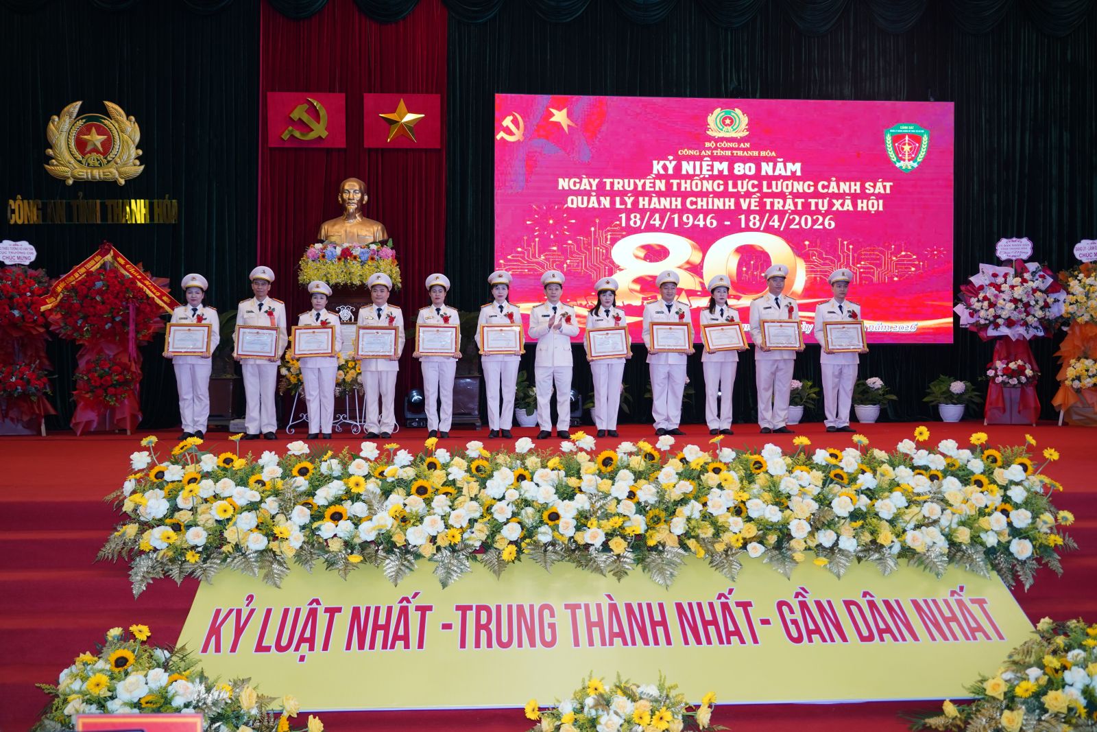 Tại Lễ kỷ niệm, có 15 tập thể, 11 cá nhân được Thủ tướng Chính phủ và Chủ tịch UBND tỉnh tặng Bằng khen; 16 tập thể, 49 cá nhân được Cục Cảnh sát QLHC về TTXH, Bộ Công an và Giám đốc Công an tỉnh tặng Giấy khen về thành tích xuất sắc trong công tác.