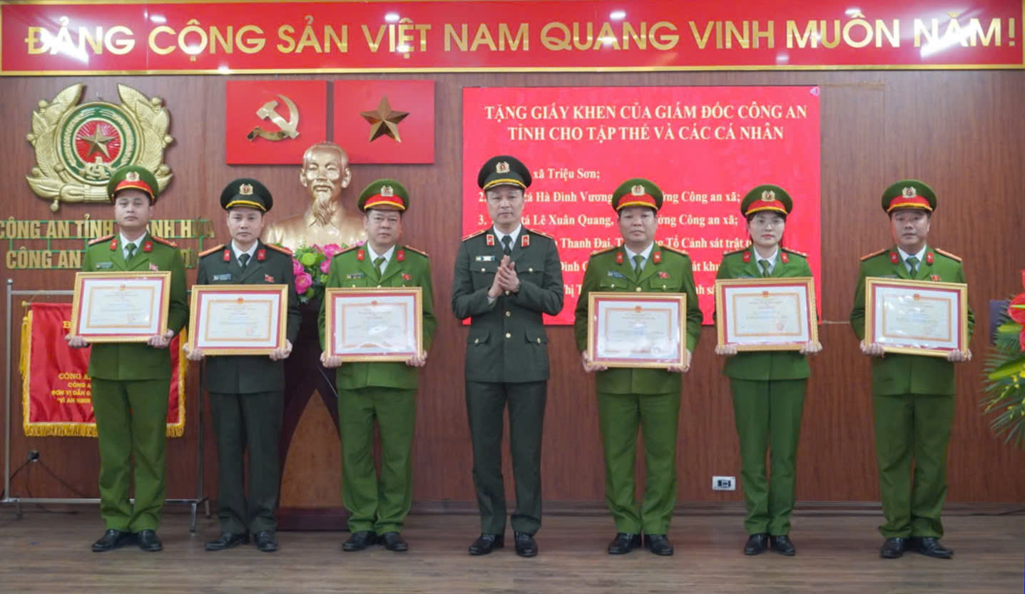 Với những kết quả, thành tích nổi bật đạt được trong năm 2025, Công an xã Triệu Sơn vinh dự được Bộ Công an tặng Cờ “Đơn vị dẫn đầu phong trào thi đua Vì an ninh Tổ quốc” cấp cơ sở; 23 lượt cán bộ, chiến sĩ được các cấp biểu dương, khen thưởng. Đây là sự ghi nhận xứng đáng, đồng thời là niềm vinh dự, tự hào và động lực để năm 2026 Công an xã Triệu Sơn tiếp tục phát huy tinh thần đoàn kết, kỷ cương, đổi mới, sáng tạo, khắc phục những tồn tại, hạn chế; thực hiện hiệu quả phong trào thi đua “Ba nhất: Kỷ luật nhất - Trung thành nhất - Gần dân nhất”, quyết tâm hoàn thành xuất sắc mọi nhiệm vụ được giao.