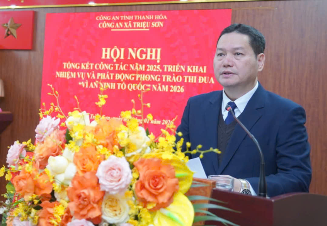 Phát biểu chỉ đạo tại hội nghị, đồng chí Thiếu tướng Tô Anh Dũng, Giám đốc Công an tỉnh ghi nhận, đánh giá cao những cố gắng, nỗ lực và những kết quả đạt được của Công an xã Triệu Sơn trong năm 2025.