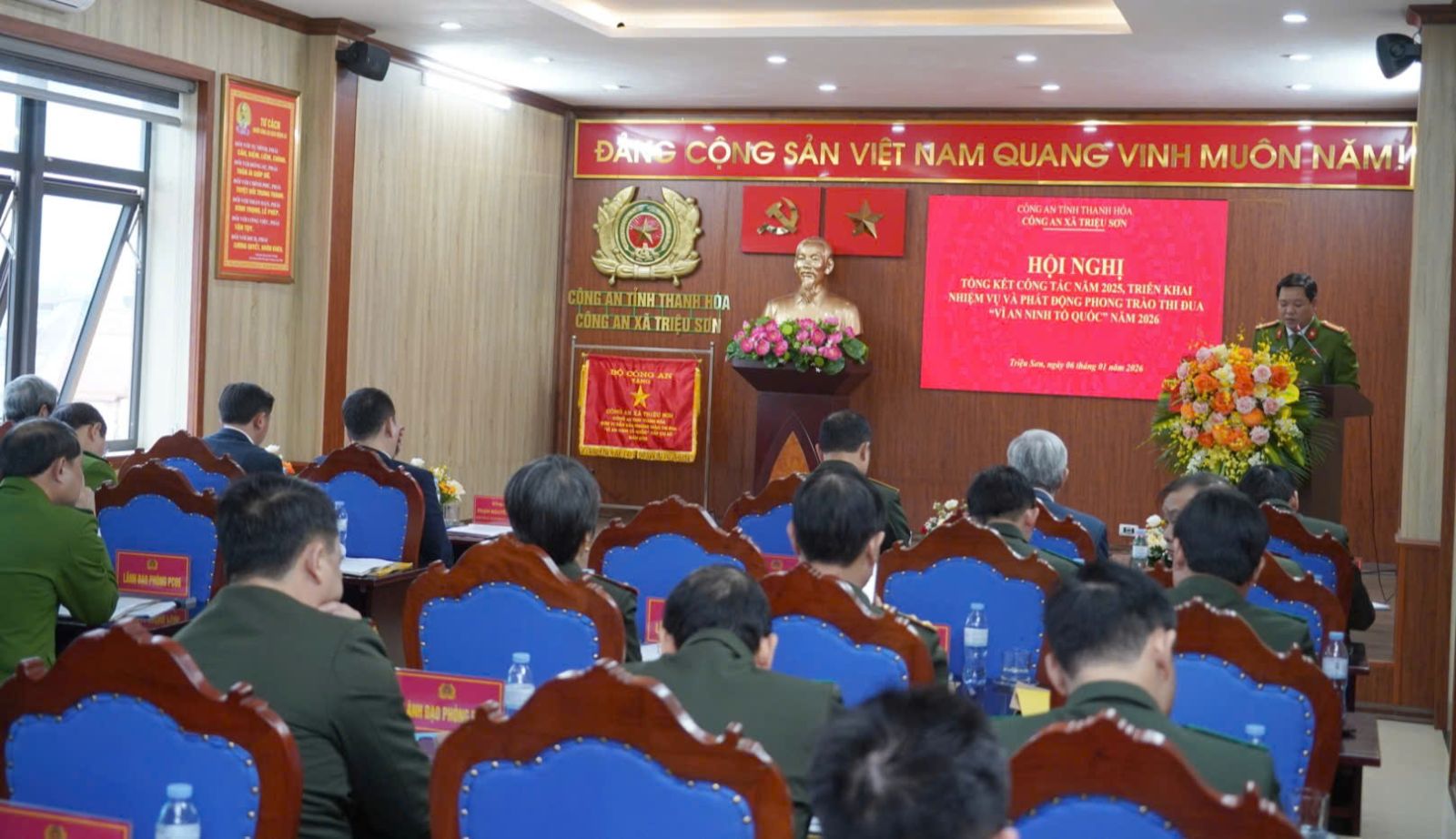 Chiều 06/01/2026, Công an xã Triệu Sơn tổ chức Hội nghị tổng kết công tác Công an năm 2025, triển khai nhiệm vụ và phát động phong trào thi đua “Vì an ninh Tổ quốc” năm 2026. Đồng chí Thiếu tướng Tô Anh Dũng, Ủy viên Ban Thường vụ Tỉnh ủy, Giám đốc Công an tỉnh dự, chỉ đạo Hội nghị...