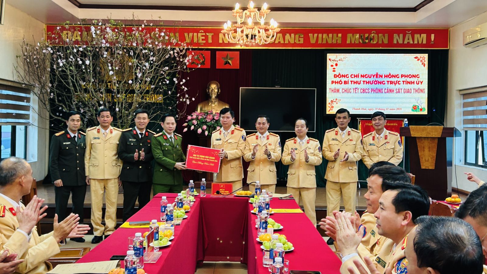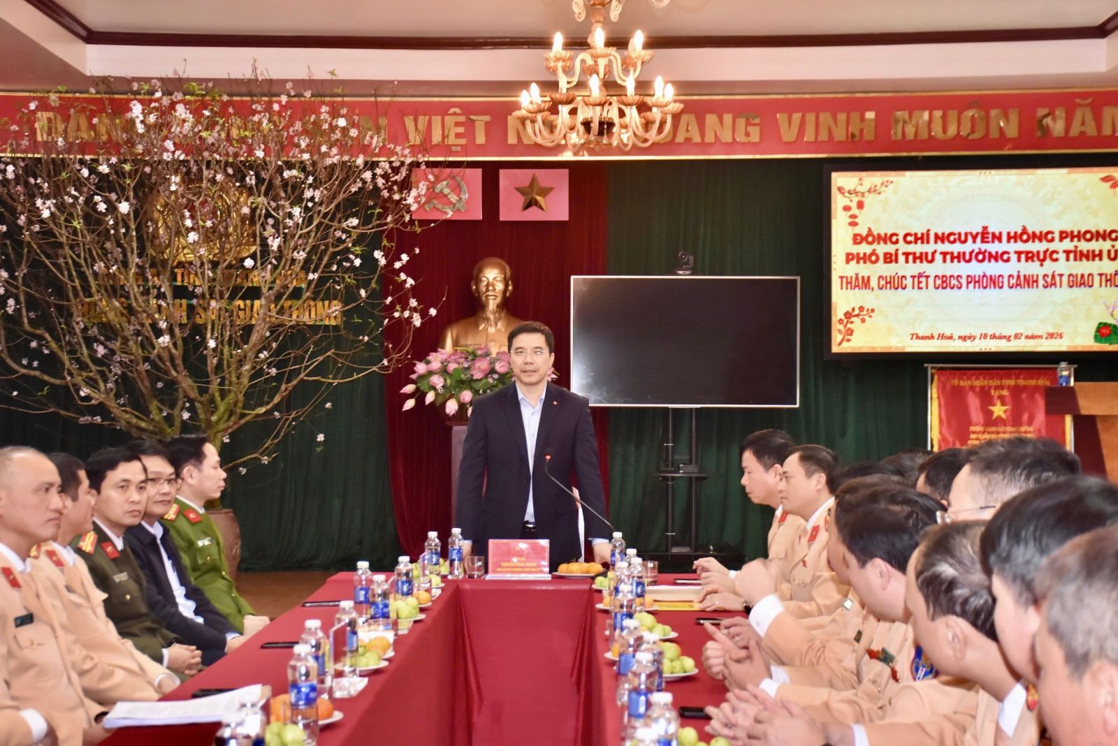Chiều 10/02/2026, đồng chí Nguyễn Hồng Phong, Ủy viên dự khuyết Trung ương Đảng, Phó Bí thư Thường trực Tỉnh ủy đã đến thăm, kiểm tra tình hình thực hiện nhiệm vụ trong dịp Tết Nguyên đán Bính Ngọ 2026 và chúc Tết cán bộ, chiến sĩ tại Phòng Cảnh sát giao thông, Phòng Cảnh sát cơ động, Phòng Cảnh sát phòng cháy, chữa cháy và cứu nạn, cứu hộ (PCCC và CNCH) Công an tỉnh...