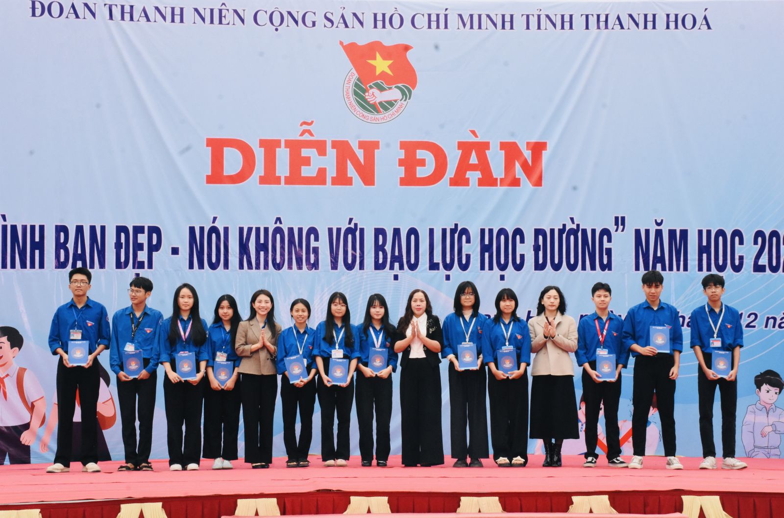 Tại diễn đàn, các đại biểu và gần 1.000 đoàn viên, học sinh trường THPT Quảng Xương 1 đã theo dõi phóng sự phản ánh thực trạng bạo lực học đường xảy ra tại nhiều địa phương trên cả nước thời gian qua, chỉ rõ những nguyên nhân tiềm ẩn và hậu quả nặng nề đối với học sinh. Qua đó, chương trình giúp các em nhận thức sâu sắc hơn về trách nhiệm của bản thân trong ứng xử văn minh, phòng ngừa và kiên quyết nói không với bạo lực học đường.