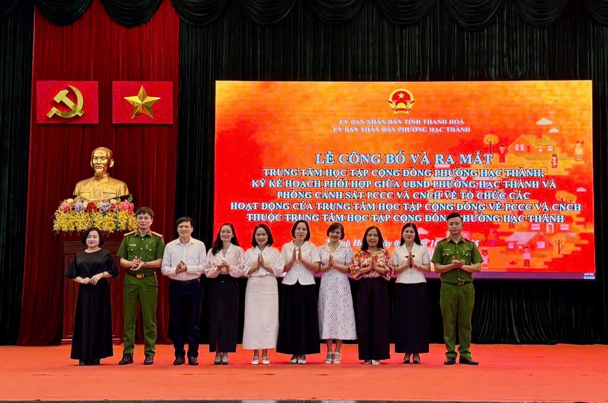 Chiều 4/10/2025, UBND phường Hạc Thành tổ chức Lễ công bố và ra mắt Trung tâm học tập cộng đồng phường Hạc Thành, đồng thời ký kết Kế hoạch phối hợp giữa UBND phường và Phòng Cảnh sát phòng cháy, chữa cháy (PCCC) và cứu nạn, cứu hộ (CNCH), Công an tỉnh Thanh Hóa về tổ chức các hoạt động của Trung tâm học tập cộng đồng về PCCC và CNCH...
