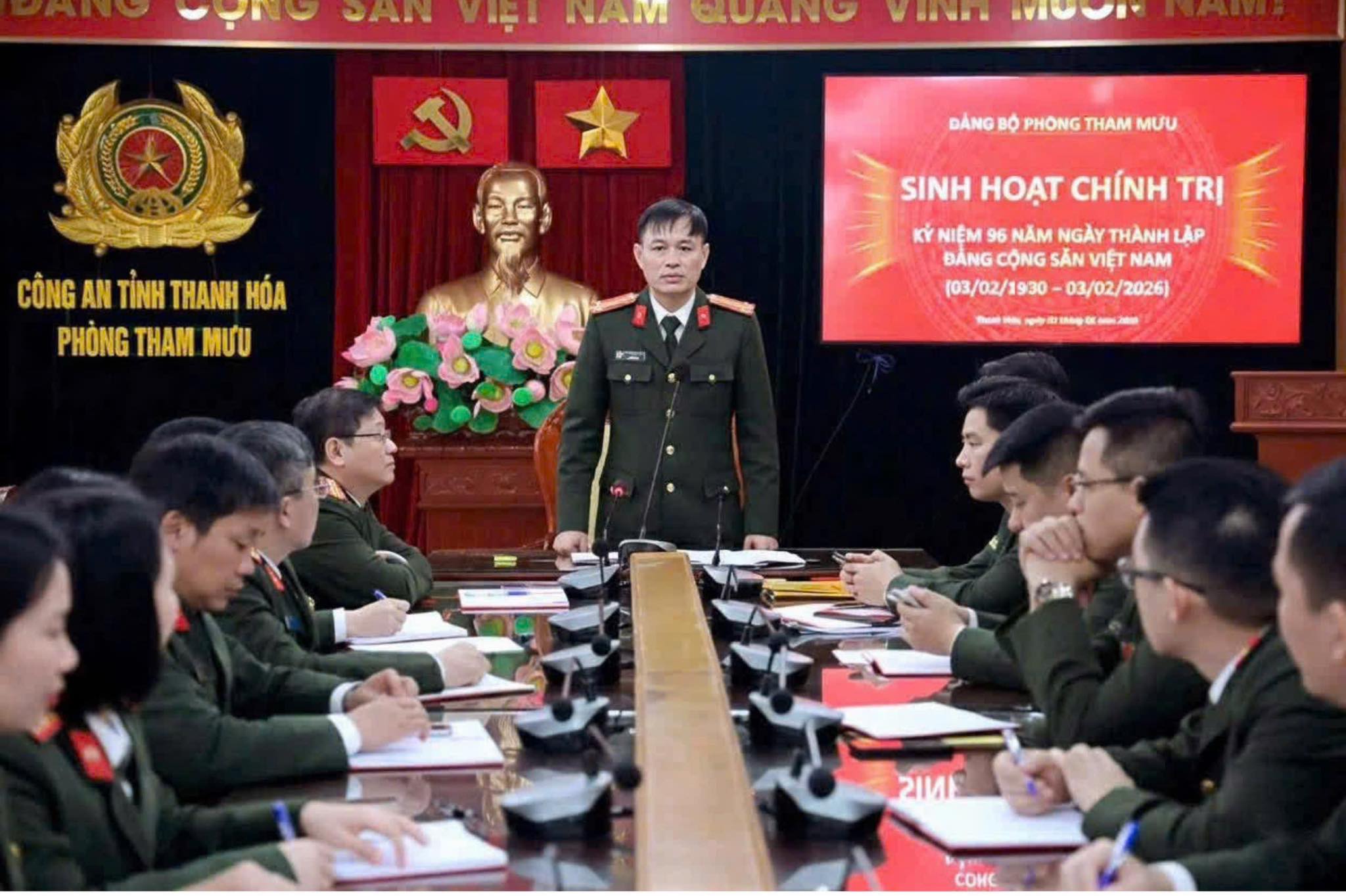 Kỷ niệm 96 năm Ngày thành lập Đảng Cộng sản Việt Nam (03/02/1930 - 03/02/2026), Phòng Tham mưu Công an tỉnh đã tổ chức sinh hoạt chuyên đề với chủ đề “Dưới lá cờ vẻ vang của Đảng”. Đây là đợt sinh hoạt chính trị sâu rộng nhằm khơi dậy niềm tự hào, bồi đắp lý tưởng cách mạng và khẳng định bản lĩnh của người chiến sĩ Công an trên mặt trận tham mưu chiến lược.