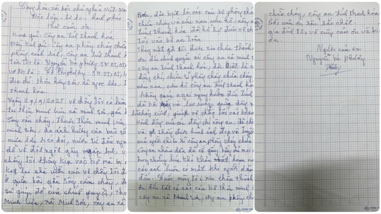 Ông Nguyễn Bá Phương gửi thư cảm ơn lực lượng Cảnh sát PCCC và CNCH sau khi được cứu thoát khỏi mưa lũ