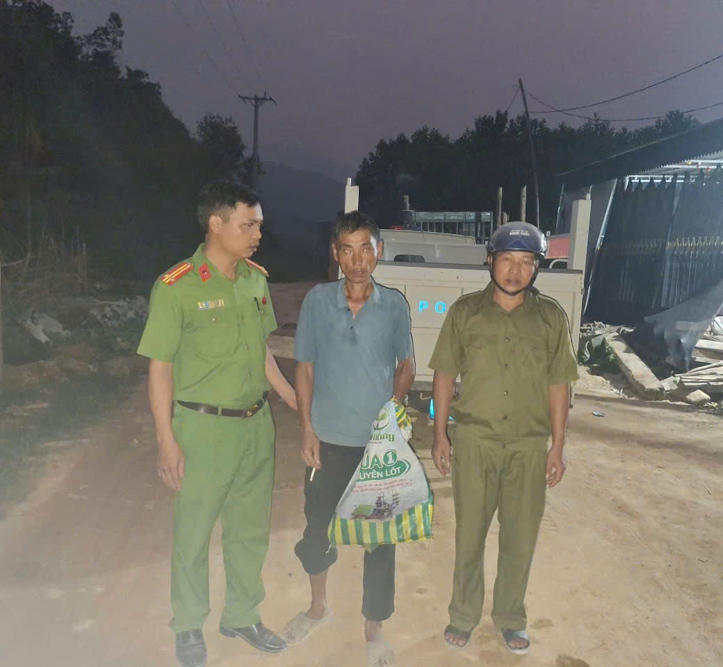 Công an xã  Xuân Chinh nỗ lực tìm kiếm và đưa ông Thiết về trụ sở để nghỉ ngơi, hỗ trợ ăn uống và đảm bảo sức khỏe ban đầu
