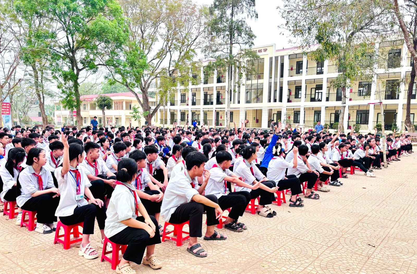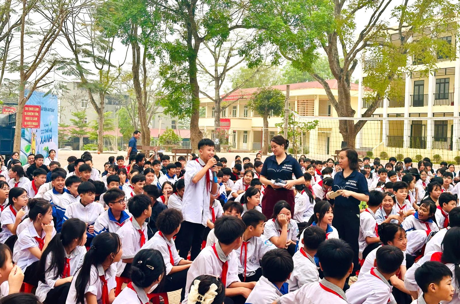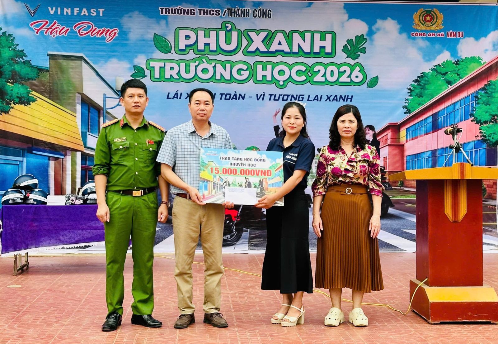 Tiếp tục lan tỏa tinh thần ấy, trong hai ngày 9 và 10/4/2026, Công an xã Vân Du đã phối hợp với Cửa hàng xe máy Hậu Dung tổ chức chương trình tặng quà kết hợp tuyên truyền pháp luật tại Trường THCS Thành Công và Trường THCS Thành Tân, thu hút sự tham gia của đông đảo cán bộ, giáo viên và học sinh.