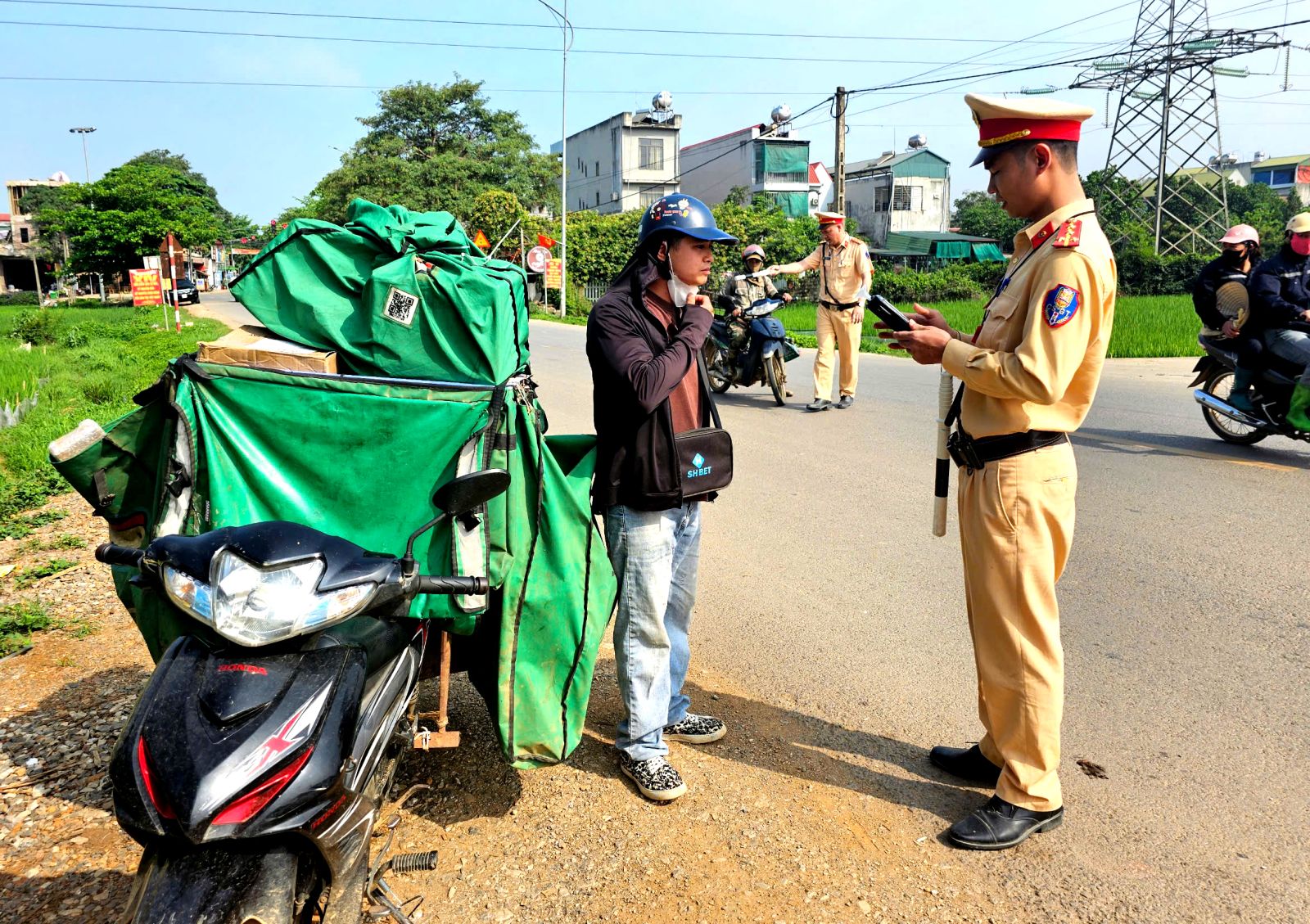 Song song với công tác tuyên truyền, phổ biến pháp luật, lực lượng Công an cũng tăng cường công tác kiểm tra, kiểm soát và xử lý nghiêm các hành vi vi phạm trật tự ATGT. Các lỗi vi phạm phổ biến như: điều khiển phương tiện chạy quá tốc độ, vi phạm nồng độ cồn, không đội mũ bảo hiểm, chở quá số người quy định, xe chở hàng quá tải trọng, quá khổ giới hạn, tự ý cơi nới thành, thùng xe, sử dụng điện thoại hoặc thiết bị điện tử khi điều khiển phương tiện tham gia giao thông, không chấp hành đèn tín hiệu, đi vào đường cấm, đi ngược chiều, không đúng phần đường, làn đường, tránh vượt sai quy định, điều khiển xe thành đoàn gây cản trở giao thông, lạng lách, đánh võng, đua xe trái phép, gây rối trật tự công cộng… đều được tập trung xử lý quyết liệt, không có vùng cấm, không có ngoại lệ.