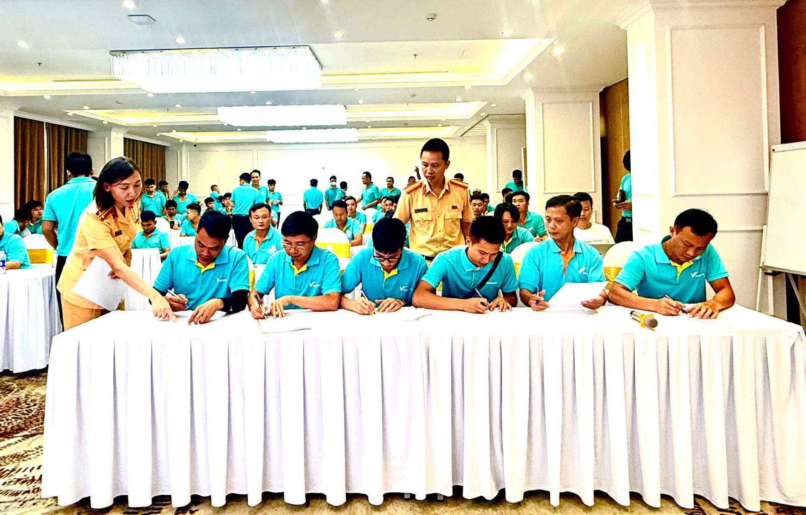 Lực lượng Cảnh sát giao thông tổ chức cho lái xe taxi Xanh SM ký cam kết