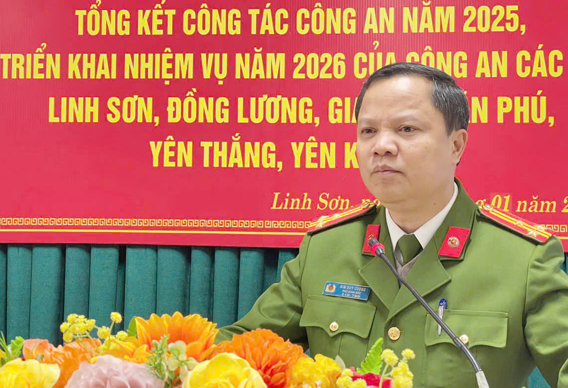 Đó là ý kiến chỉ đạo của đồng chí Thượng tá Kim Duy Cương, Phó Giám đốc Công an tỉnh tại Hội nghị tổng kết công tác năm 2025, triển khai nhiệm vụ năm 2026 tại Công an các xã Linh Sơn, Đồng Lương, Giao An, Văn Phú, Yên Thắng và Yên Khương.