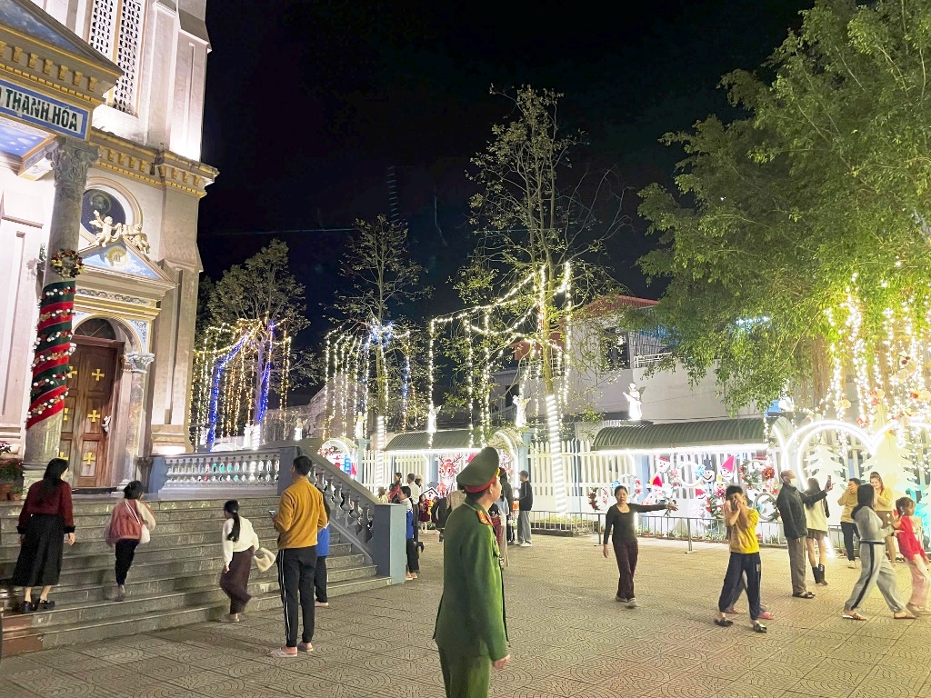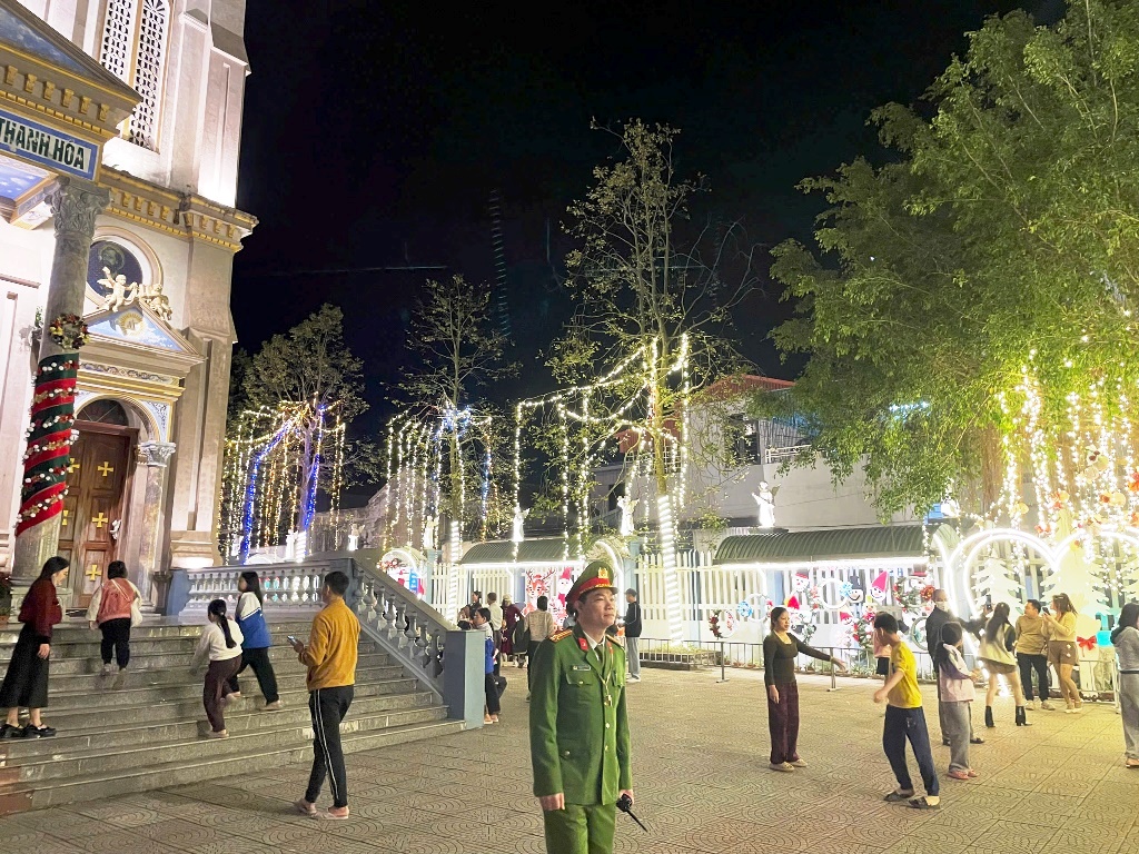 Không chỉ bảo đảm tốt ANTT từ sớm, từ xa, trong đêm Noel - thời điểm lưu lượng người và phương tiện tập trung về các nhà thờ, giáo xứ rất đông. Lực lượng Công an đã huy động hàng nghìn lượt cán bộ, chiến sĩ phối hợp với các tổ bảo vệ ANTT ở cơ sở, thành lập các tổ công tác trên các tuyến, địa bàn tỉnh và trọng điểm để triển khai phương án bảo đảm ANTT. Các lực lượng được bố trí theo từng khu vực, từng khung giờ cụ thể, tập trung tại các nhà thờ, khu vực tổ chức lễ, các tuyến giao thông trọng điểm và nơi tập trung đông người; kết hợp chốt trực cố định với tuần tra lưu động nhằm kịp thời phát hiện, xử lý các tình huống phức tạp phát sinh