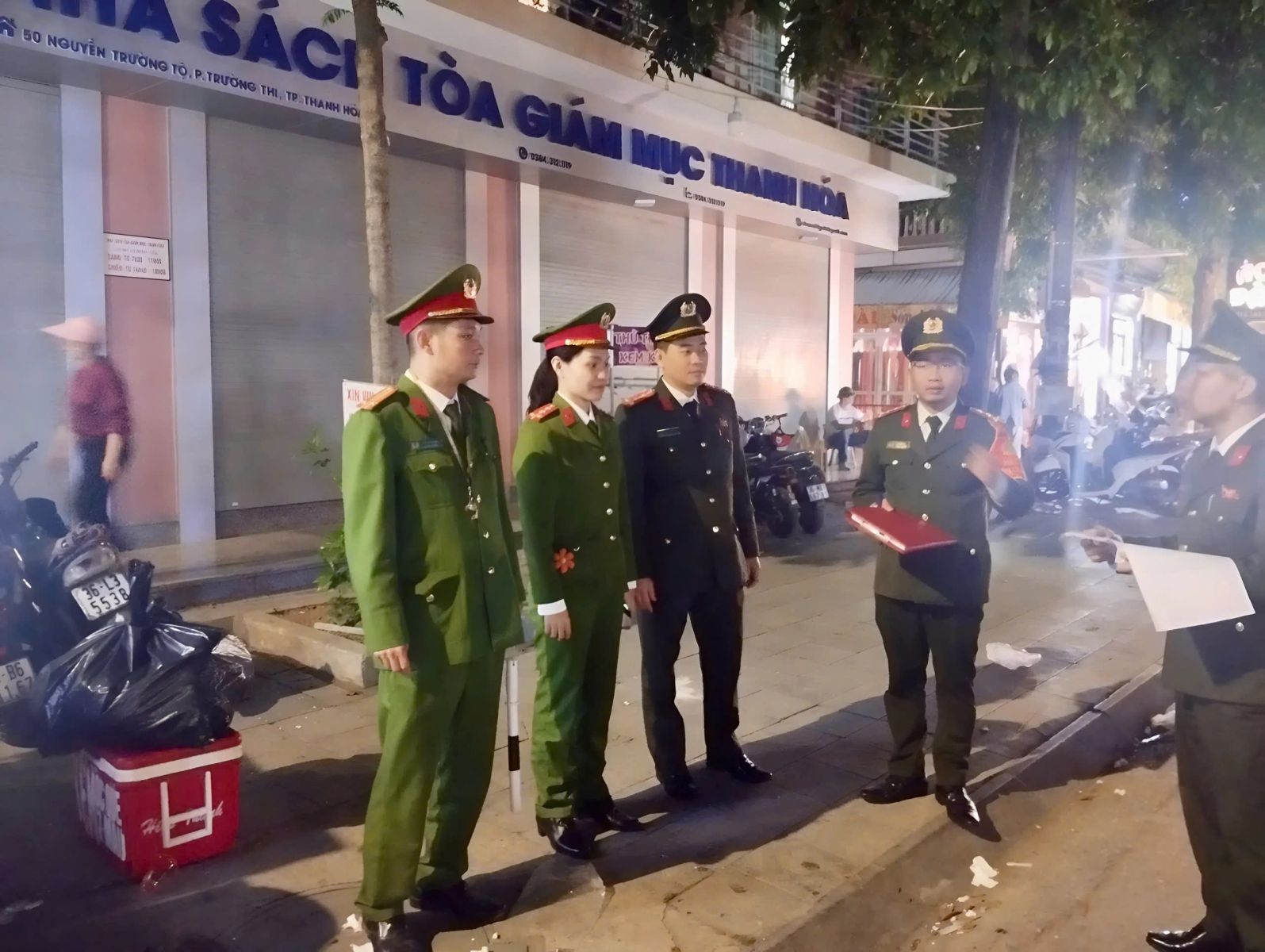 Công an phường Hạc Thành bố trí lực lượng đến từng vị trí, từng tổ công tác để tổ chức tuần tra, nắm tình hình, bảo đảm ANTT đêm Noel 2025