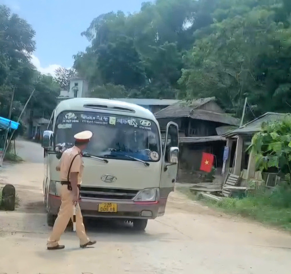 Theo đó, thông qua tin báo của quần chúng nhân dân cung cấp, vào hồi 13 giờ 10 phút ngày 23/9/2025, tại trước cổng Uỷ ban nhân dân xã Trung Thành, tỉnh Thanh Hoá (Tỉnh lộ 521 cũ), tổ công tác của Phòng Cảnh sát giao thông – Công an tỉnh Thanh Hoá đã phát hiện và dừng kiểm tra phương tiện xe ô tô khách (loại 29 chỗ) biển kiểm soát 22B-009.19 do anh Lò Khăm Tiếp, sinh năm 2005, trú tại xã Hiền Kiệt, tỉnh Thanh Hoá điều khiển. Qua kiểm tra, trên phương tiện ô tô khách chở 44 học sinh của 01 trường Trung học cơ sở trên địa bàn (chở vượt quá 16 người so với quy định); lái xe không có giấy phép lái xe; xe không có hợp đồng vận tải. Tổ công tác tiến hành lập biên bản vi phạm hành chính các lỗi vi phạm trên và đề nghị xử phạt tổng số tiền 113.500.000đ đối với xe khách.