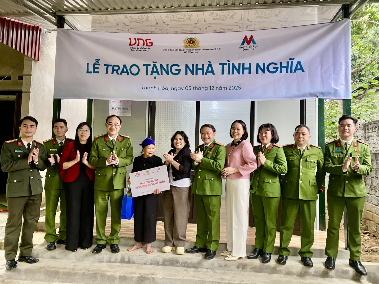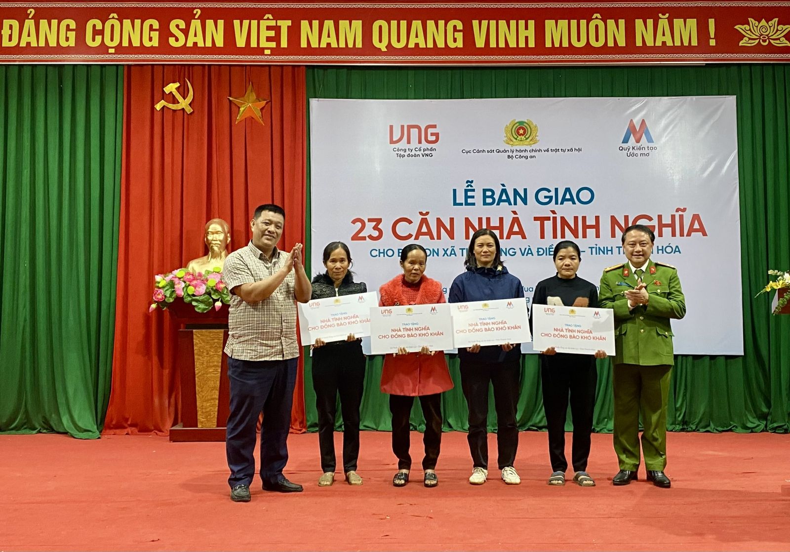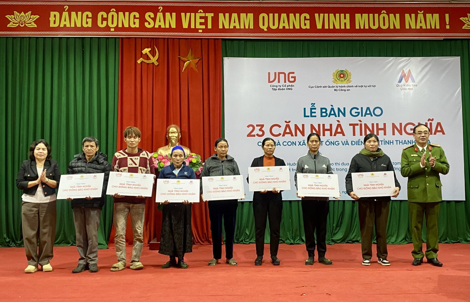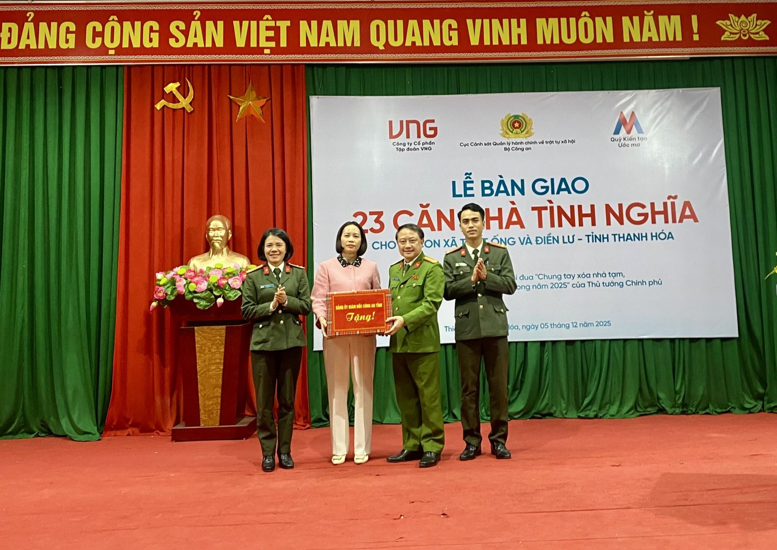 Ngày 05/12, Cục Cảnh sát Quản lý hành chính về trật tự xã hội (QLHC về TTXH), Bộ Công an đã phối hợp với Quỹ Kiến tạo Ước mơ do VNG Group bảo trợ tổ chức trao 23 căn nhà tình nghĩa cho các hộ gia đình có hoàn cảnh đặc biệt khó khăn tại xã Thiết Ống và xã Điền Lư (tỉnh Thanh Hóa).