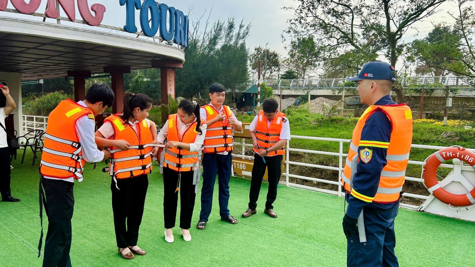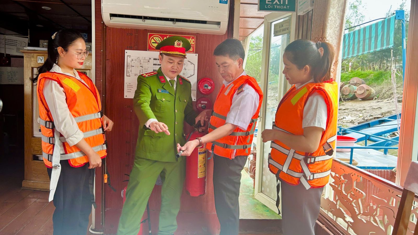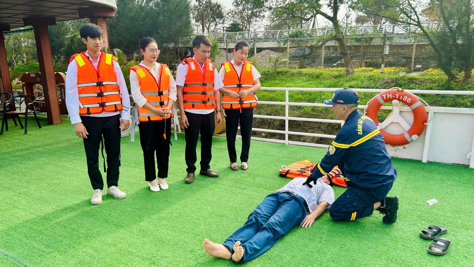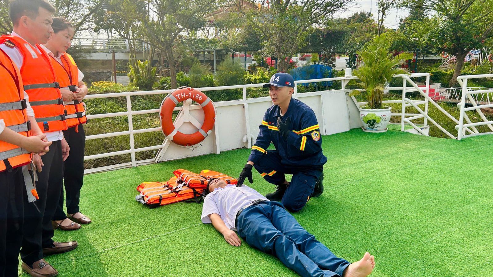 Bên cạnh đó, lực lượng chức năng đã hướng dẫn kỹ năng sử dụng bình chữa cháy xách tay, cách xử lý tình huống khi xảy ra cháy trên phương tiện thủy; quy trình tổ chức thoát nạn an toàn, cứu người bị nạn dưới nước; cách sử dụng áo phao, phao cứu sinh và các thiết bị cứu hộ thông dụng. Các cán bộ, nhân viên tham gia còn được thực hành thao tác sử dụng phương tiện chữa cháy, kỹ năng sơ cứu ban đầu đối với nạn nhân đuối nước.