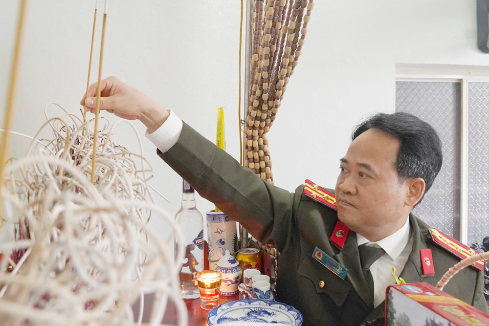 Đồng chí Phó Giám đốc thắp hương tưởng nhớ đồng chí cố Đại tá Phạm Như Nhuần, nguyên Phó Giám đốc Công an tỉnh.