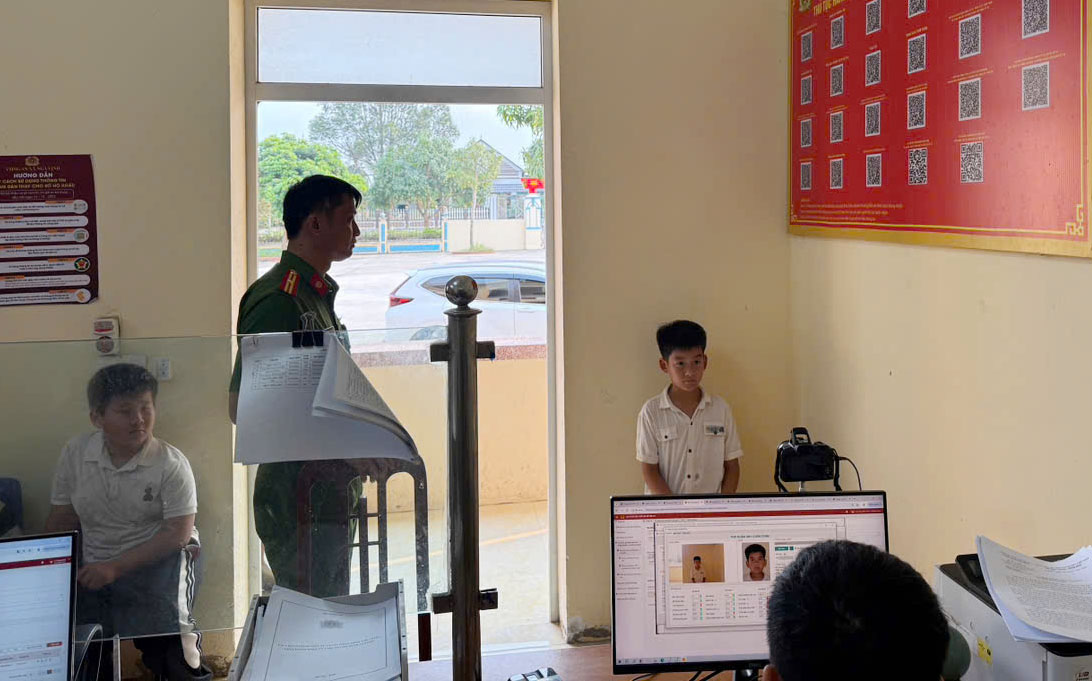 Tại điểm thu nhận hồ sơ ở Trường Tiểu học và Trung học cơ sở Nga Vịnh, dù số lượng học sinh tham gia đông, công tác tổ chức vẫn diễn ra trật tự và khoa học. Thầy Nguyễn Văn Tuyển, Hiệu trưởng nhà trường chia sẻ, do có sự phối hợp chặt chẽ giữa nhà trường và lực lượng Công an trong công tác chuẩn bị nên mặc dù chỉ có 3 cán bộ Công an trực tiếp thực hiện, nhưng quy trình làm việc được bố trí hợp lý, nhanh gọn và thuận tiện. Trong điều kiện thời tiết nắng nóng, các cán bộ vẫn giữ thái độ nhiệt tình, phục vụ chu đáo, không để học sinh phải chờ đợi lâu, không ảnh hưởng đến thời gian học tập của học sinh.