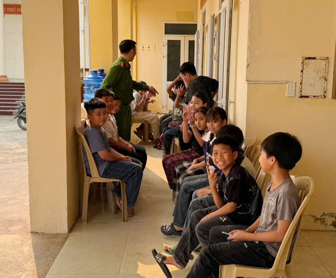Công an xã Ba Đình phối hợp với nhà trường bảo đảm mọi công dân trong độ tuổi từ 6 đến 14 đều được thu nhận hồ sơ, kích hoạt tài khoản định danh điện tử.