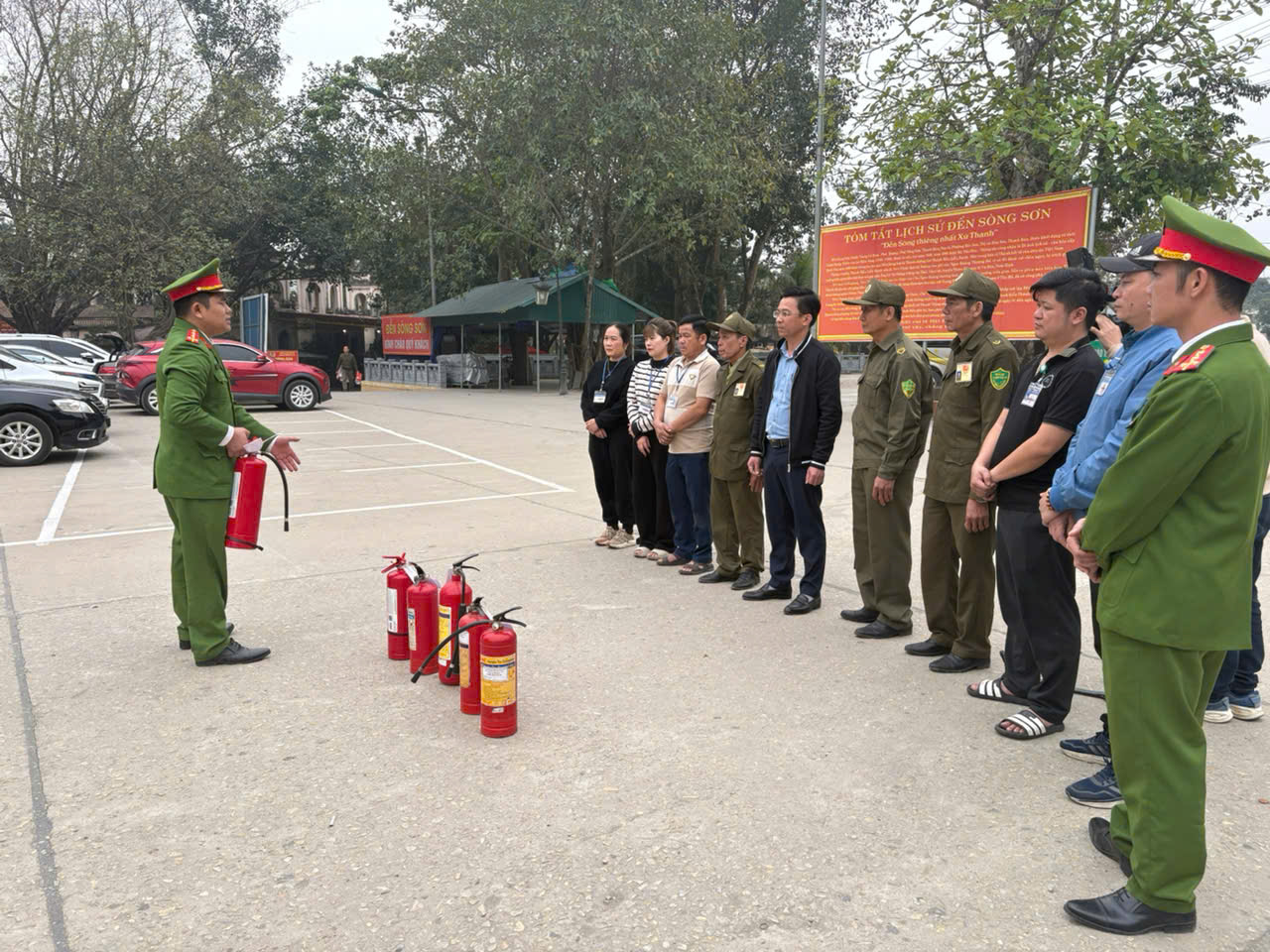 Ngay trước mùa lễ hội, lực lượng Cảnh sát PCCC và cứu nạn, cứu hộ (CNCH) Công an tỉnh đã trực tiếp tổ chức các lớp tập huấn, hướng dẫn kỹ năng xử lý tình huống cháy, nổ cho cán bộ, nhân viên Ban Quản lý di tích. Đại úy Văn Đình Huy, Phó Đội trưởng Đội chữa chát và CNCH khu vực 3, Phòng PC07 nhấn mạnh, việc trang bị kiến thức, kỹ năng cho lực lượng tại chỗ có ý nghĩa đặc biệt quan trọng, bởi đây là những người đầu tiên phát hiện và xử lý khi sự cố xảy ra. Nếu được xử lý kịp thời ngay từ ban đầu, đám cháy có thể được khống chế, hạn chế tối đa thiệt hại.