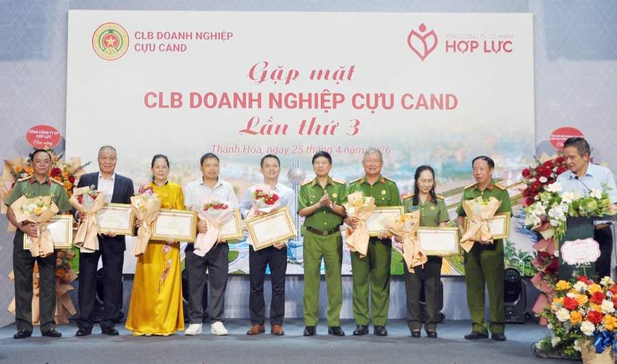 Thượng tướng Lê Quý Vương, Chủ tịch Hội Cựu CAND Việt Nam tặng bằng khen cho các tập thể trong CLB Doanh nghiệp Cựu CAND có thành tích xuất sắc.
