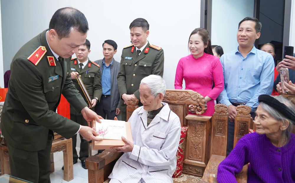 Nhân dịp chuẩn bị đón Tết cổ truyền của dân tộc, đồng chí Giám đốc Công an tỉnh trân trọng gửi lời chúc mừng năm mới đến các gia đình; đồng thời đề nghị cấp ủy, chính quyền, đoàn thể địa phương tiếp tục làm tốt công tác đền ơn, đáp nghĩa, quan tâm giúp đỡ, chăm lo đời sống vật chất và tinh thần cho các đối tượng chính sách trên địa bàn.