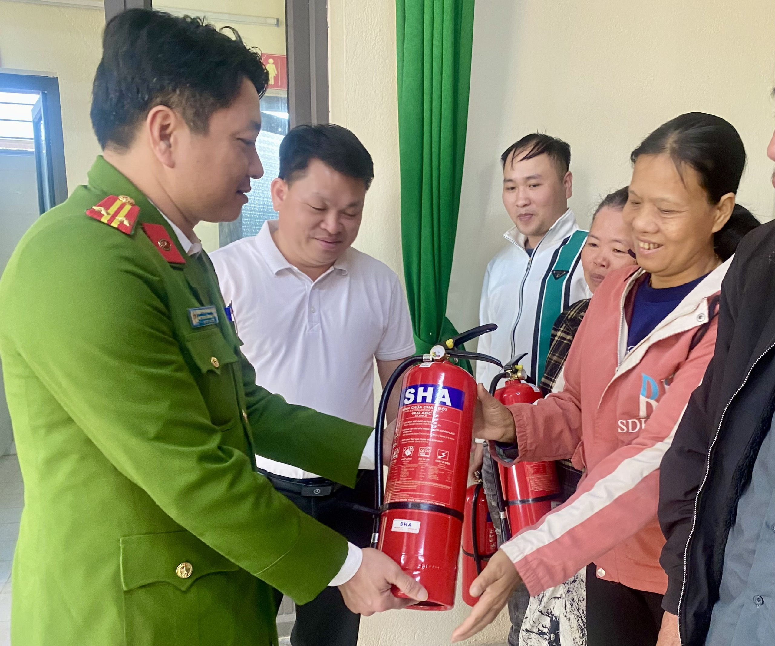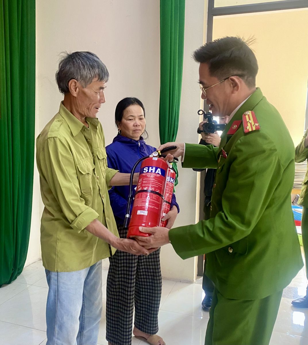 Trao tặng bình chữa cháy cho các hộ gia đình có hoàn cảnh khó khăn trên địa bàn.