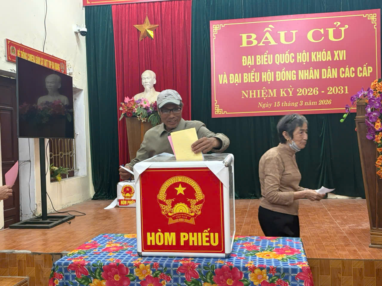 Trong quá trình vận hành thử nghiệm, các thành viên Tổ bầu cử đã thực hành đầy đủ các bước tổ chức cho cử tri bỏ phiếu. Từng khâu được triển khai cụ thể, từ việc đón tiếp, hướng dẫn cử tri đến khu vực bỏ phiếu; kiểm tra danh sách; phát phiếu bầu và hướng dẫn cách ghi phiếu theo đúng quy định; đến việc hướng dẫn cử tri bỏ phiếu vào hòm phiếu. Các bước được thực hiện nhịp nhàng, đúng trình tự, bảo đảm tính trang nghiêm và thuận tiện cho cử tri.
