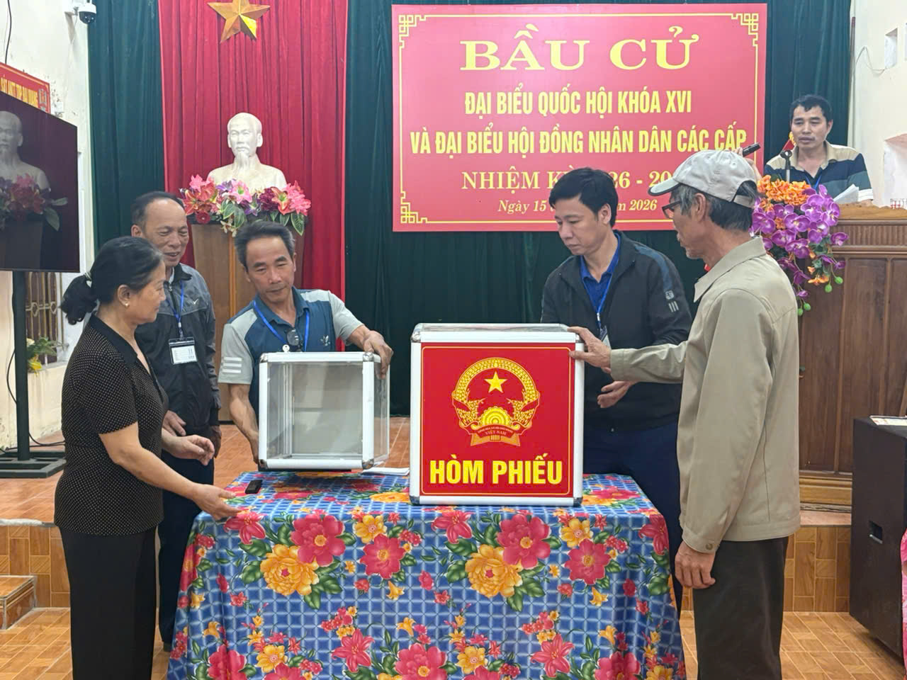 Tại Tổ bầu cử số 5, thôn Đại Quang - nơi có khoảng 1.300 cử tri tham gia bỏ phiếu, buổi vận hành thử nghiệm được tổ chức nghiêm túc, đầy đủ các bước theo quy định. Chương trình bắt đầu bằng nghi lễ chào cờ trang nghiêm, tiếp đó là tuyên bố lý do, giới thiệu đại biểu tham dự. Sau phần nghi thức, Tổ bầu cử thông qua Quyết định thành lập Tổ bầu cử, phát biểu khai mạc và phổ biến nội quy phòng bỏ phiếu để cử tri nắm rõ các quy định khi tham gia bầu cử.